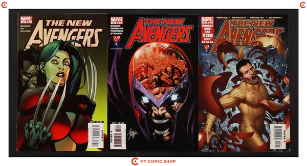 Ends Dec 15 9:08 PM CST Bid History 10 bids Current Bid $50 Your Secret Max Bid If you'd like to bid, please log in or register. Written by BRIAN MICHAEL BENDIS Pencils & Cover by DAVID FINCH. The New Avengers assemble and come face-to-face with the mystery threat that brought them together in the first place. Plus ? it's unbreakable shield versus adamantium claw. Who will win? It's wall-to-wall crazy! And thanks to you, it's the biggest comic of 2005. 32 PGS./Marvel PSR ...$2.25 Cover price $2.25.