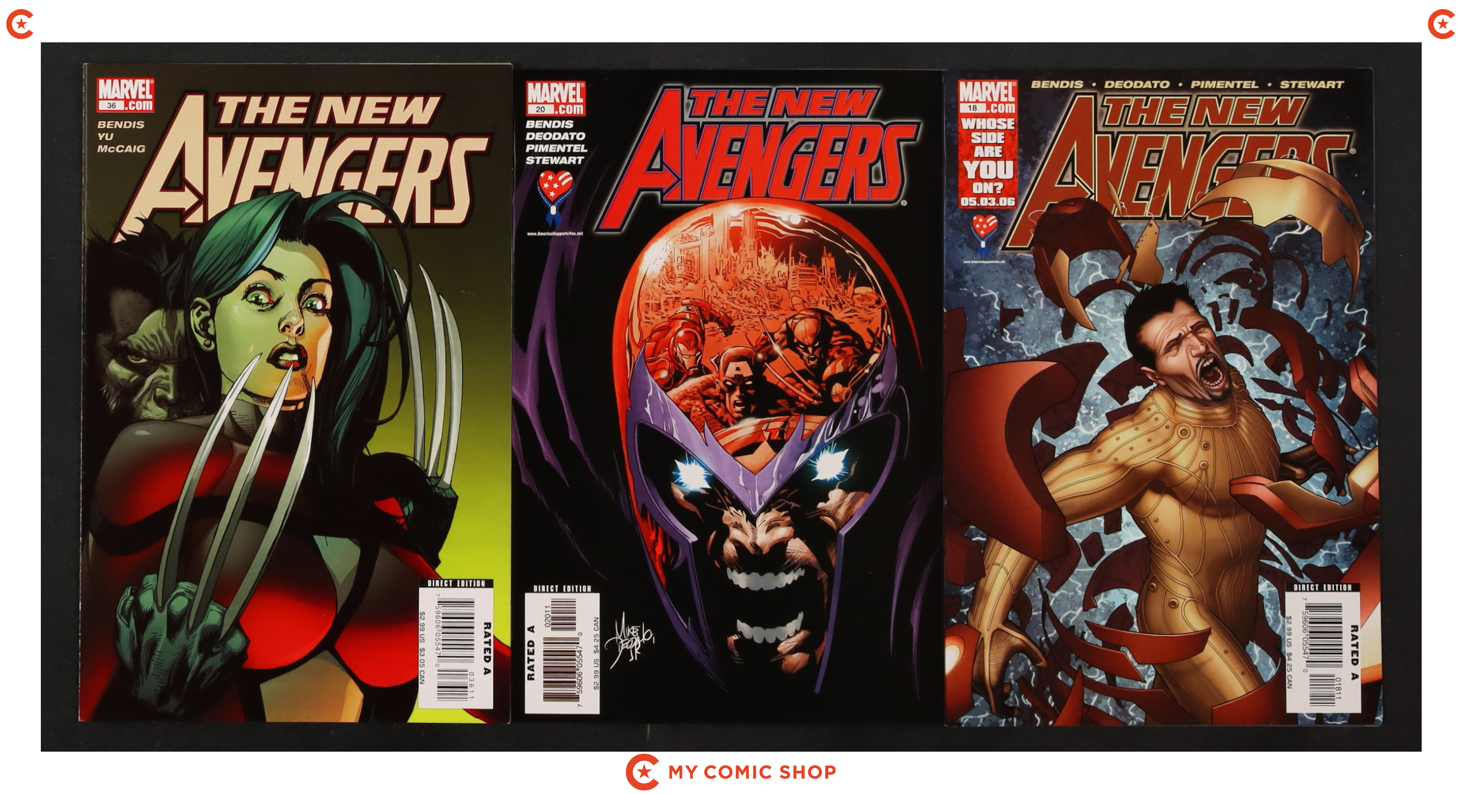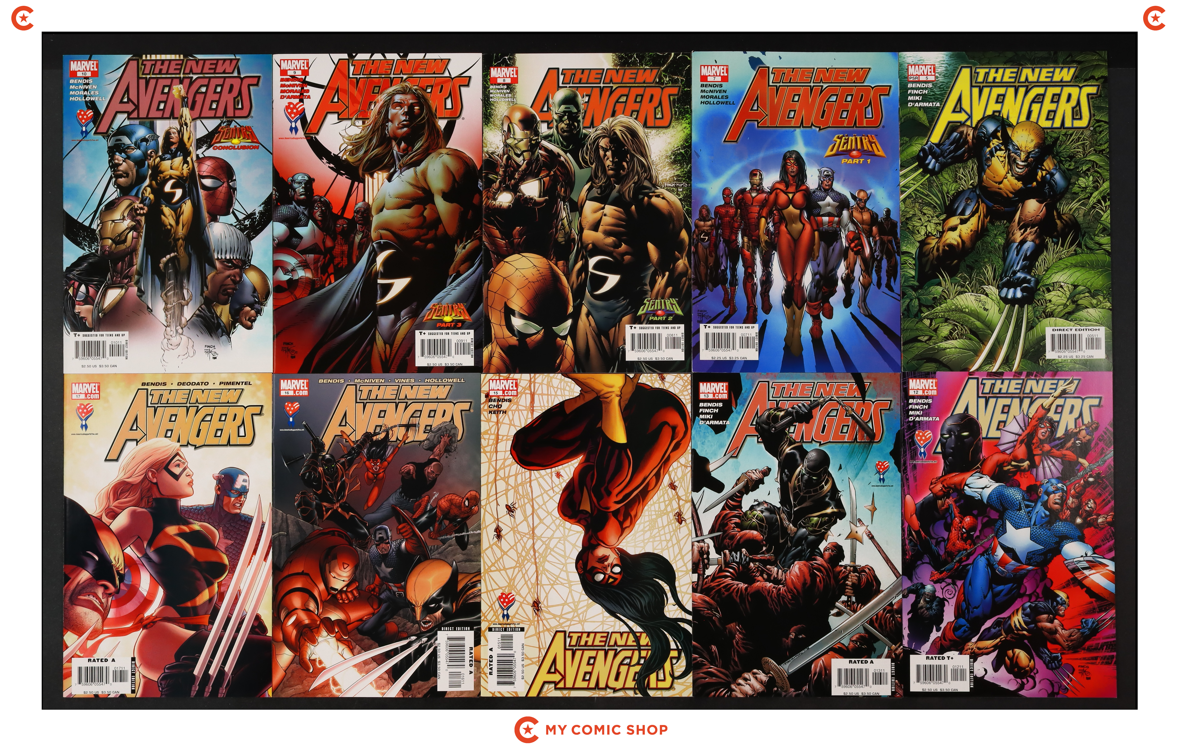 Issues 5A, 7A-10A, 12, 13, 15-18, 20, 36 of New Avengers (2005 1st Series). Most will grade in the FN/VF to VF/NM range.