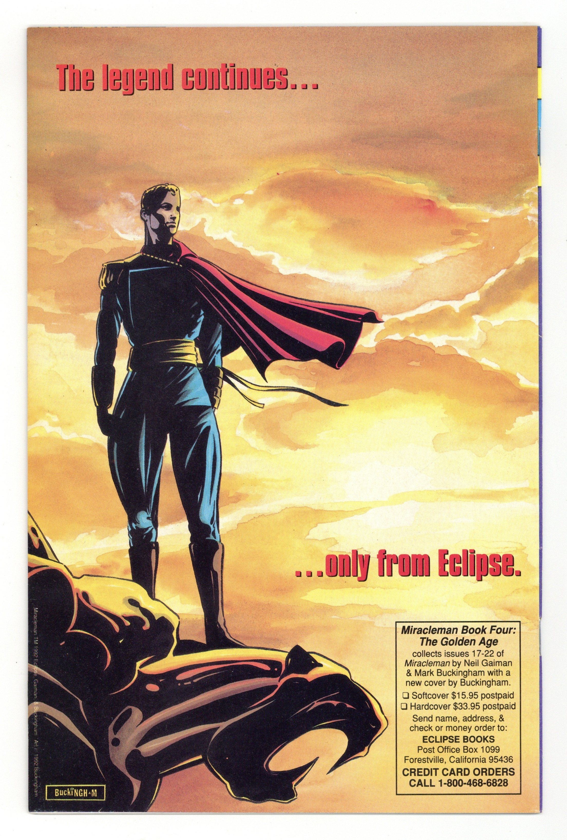 Starts Mar 16 The Secret Origin of Young Miracleman - Written by Neil Gaiman. Art by Mark Buckingham. Cover by Barry Windsor-Smith. The Silver Age begins with Book One! Characters in this issue: The Zapster (introduction), Jenda (introduction), Duncan (introduction), Mist, Panorama (introduction), Kay (introduction), Young Miracleman, Mors, Winter Moran, Miraclewoman, British Bulldog (Big Ben), Firedrake (Huey Moon) and Warpsmiths (Kana Blur, Phon Mooda). Plus: 4 pages of Mark Buckingham's sketches of the Miracleman Family. 32 pages, full color. Cover price $2.50.