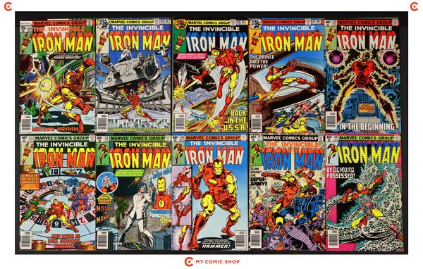 Issues 112, 116, 119, 121, 122, 123, 125N, 126N, 127N, and 130 of Iron Man (1968 1st Series). Most will grade in the VG to FN range.