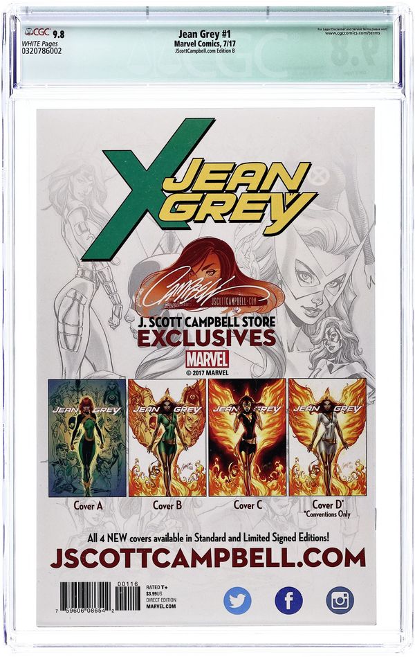 Tags: X-MenJean Grey (2017 Marvel) 1CAMPBELL.B CGC 9.8 Qualified Campbell JScottCampbell.com B Variant