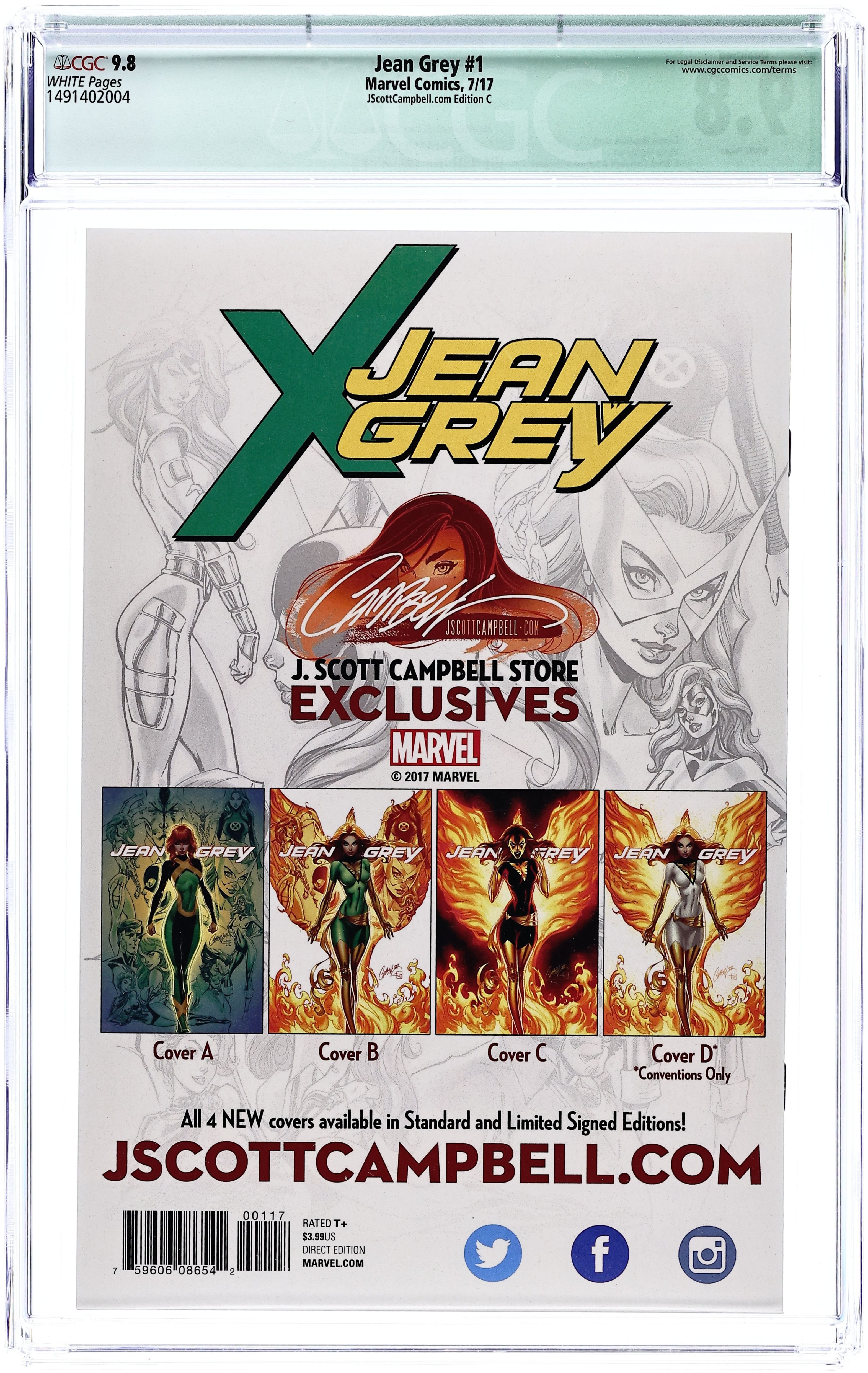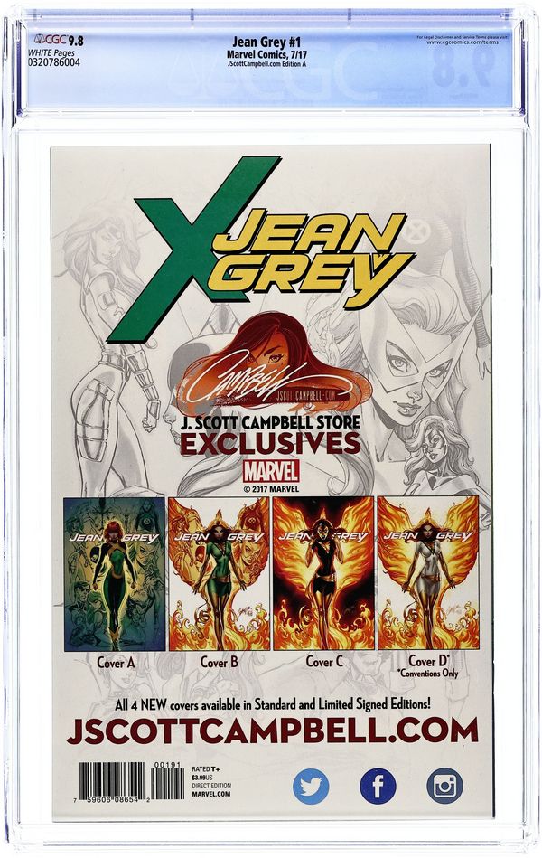 Tags: X-MenJean Grey (2017 Marvel) 1CAMPBELL.C CGC 9.8 Qualified Campbell JScottCampbell.com C Variant