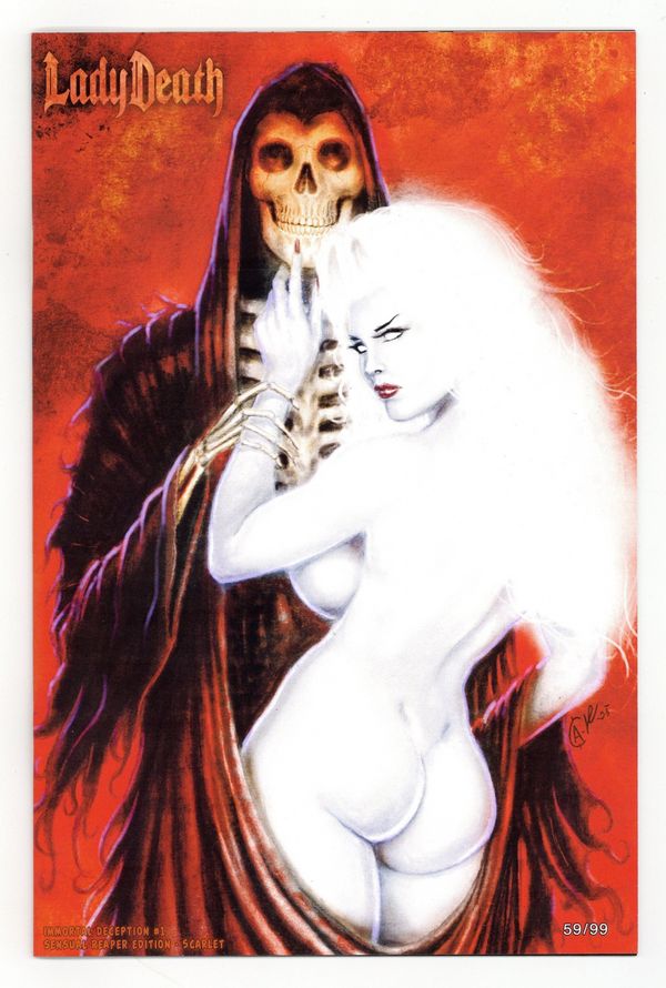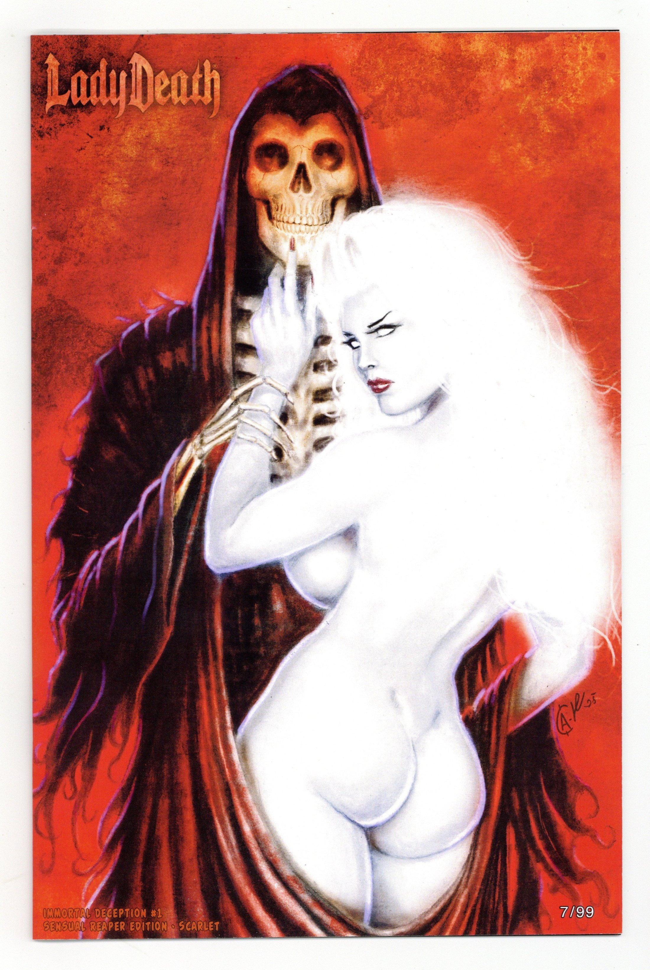 Published Jan 2026 by Coffin Comics.Lady Death Immortal Deception (2026 Coffin) Kickstarter 1REAPER.SCARLET NM 9.4