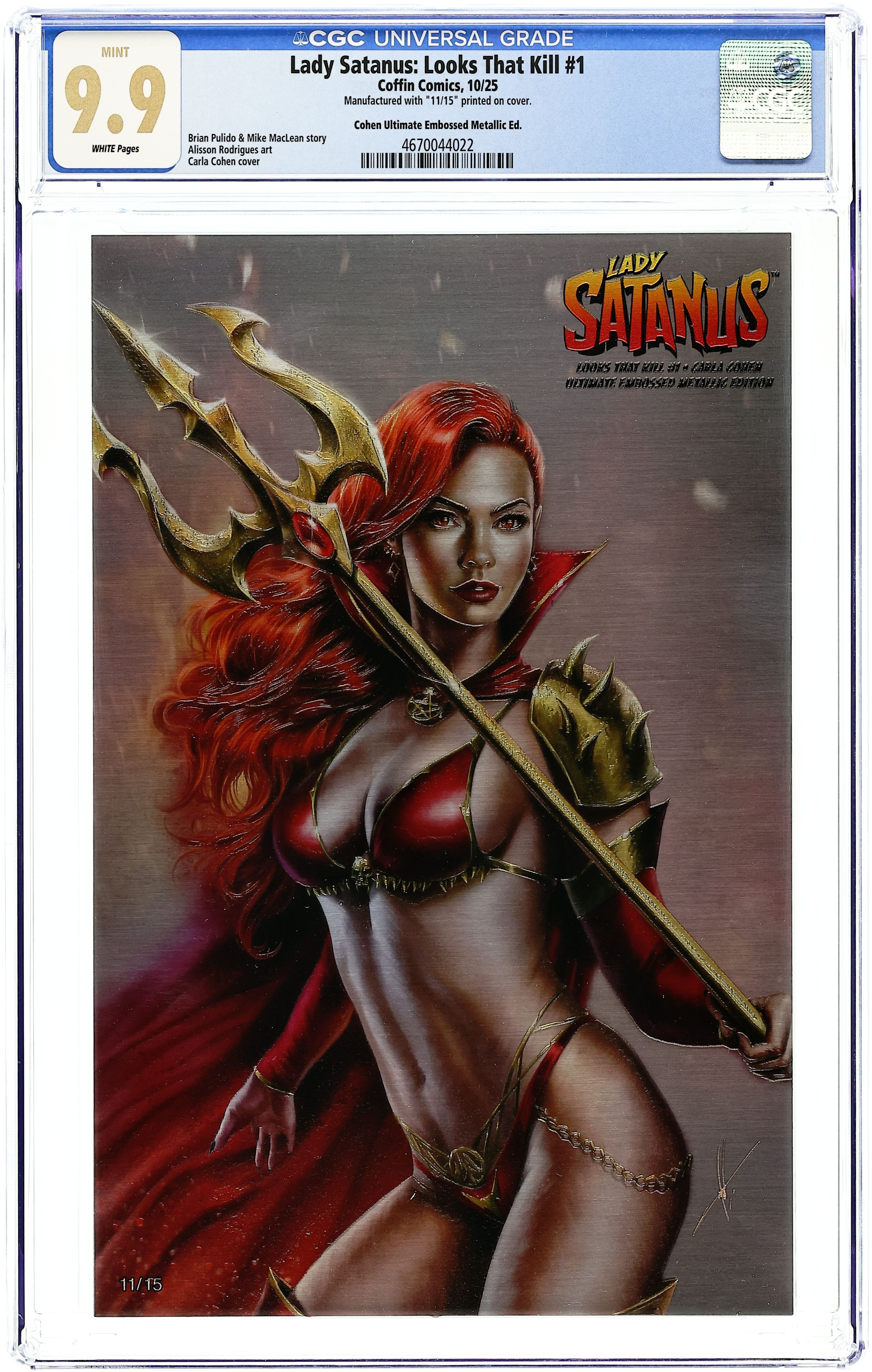 Published Oct 2025 by Coffin Comics.Lady Satanus Looks That Kill (2025 Coffin) 1COHEN.A.METAL CGC 9.9