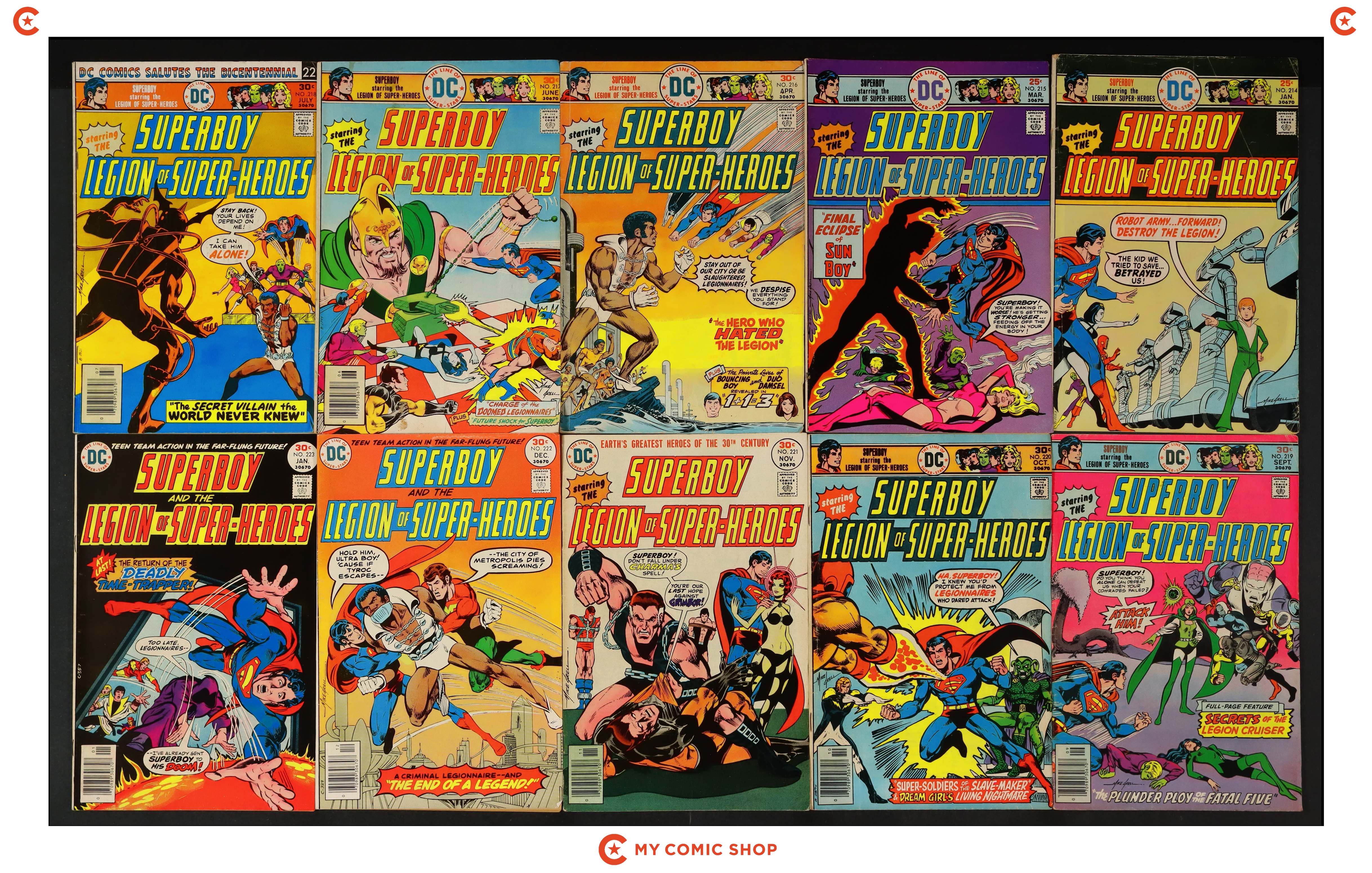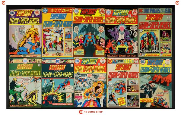 Issues 242-251 of Superboy (1949-1979 1st Series DC). Most will grade in the FN to VG range.