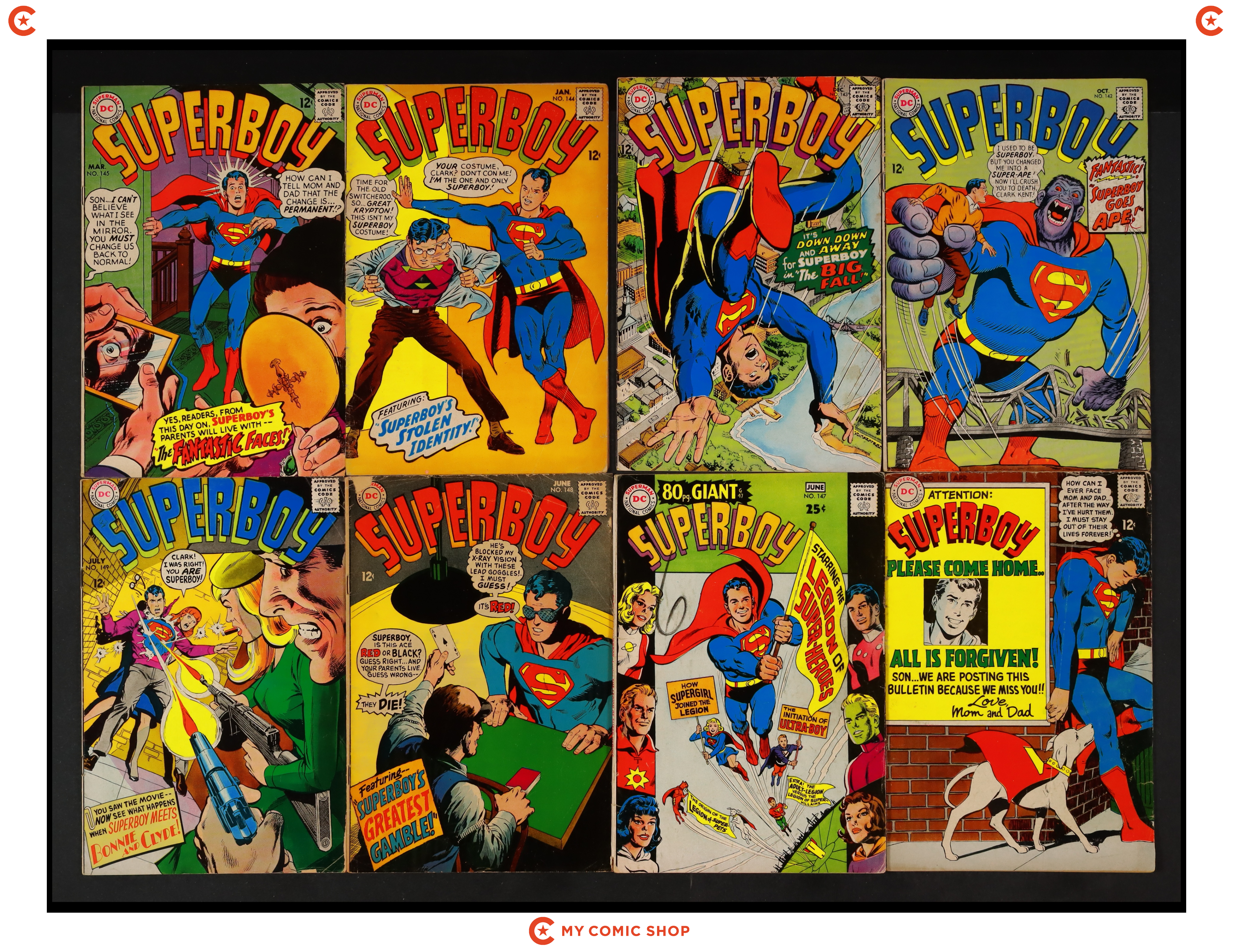 Issues 137-144 of Superboy (1949-1979 1st Series DC). Most will grade in the VG to GD range with #137 and #140 grading PR (both have a page missing, does not affect story or art).