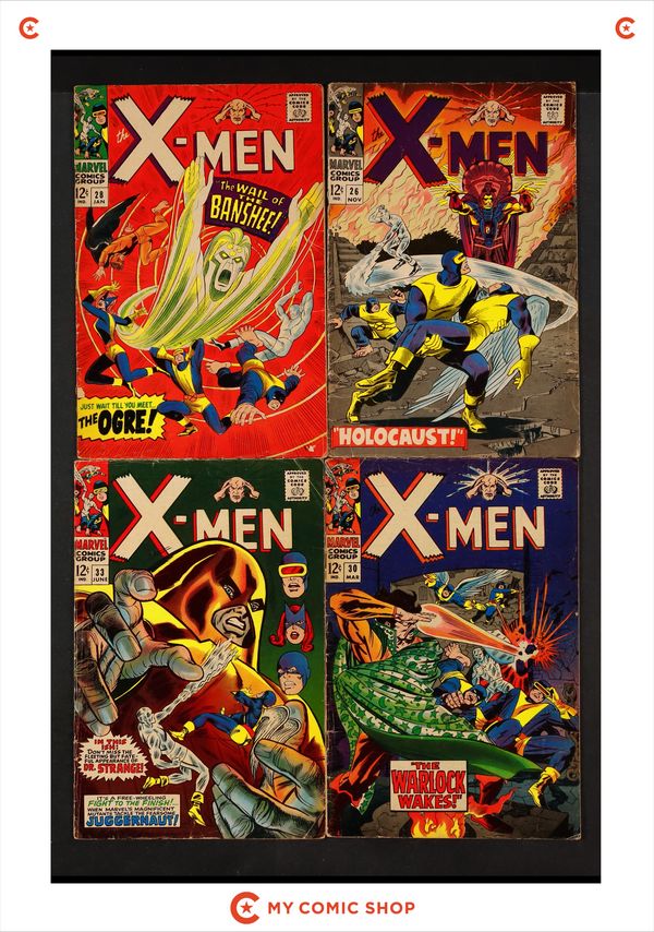 Issues 26, 28, 30, and 33 of Uncanny X-Men (1963 1st Series). Most will grade in the VG to GD/VG range.