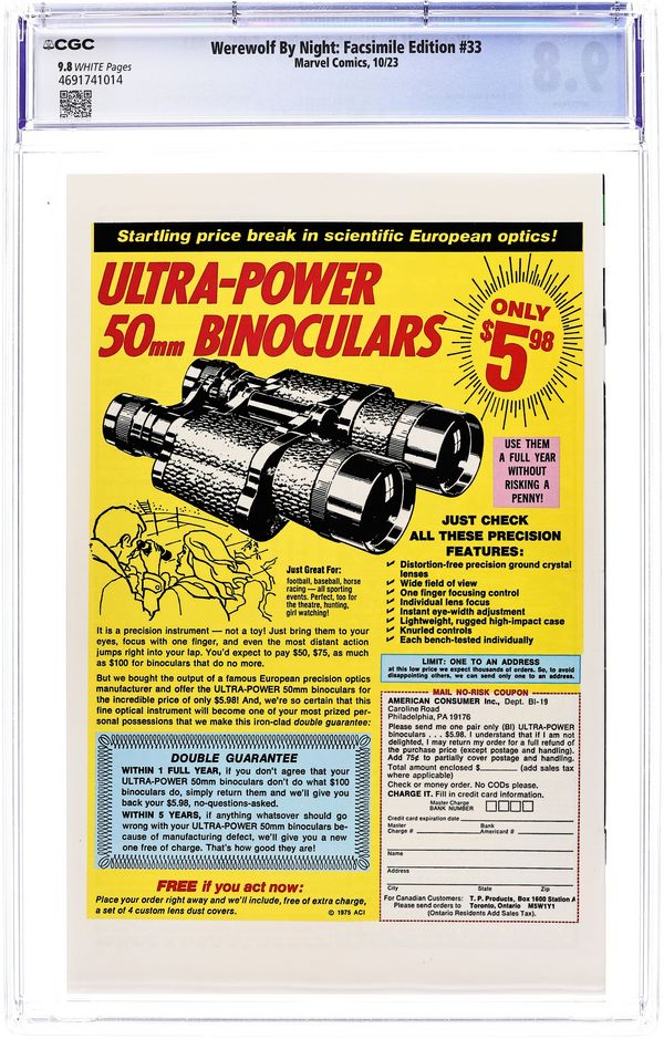 Tags: ReprintWerewolf by Night (1972 1st Series) Facsimile Edition 33 CGC 9.8