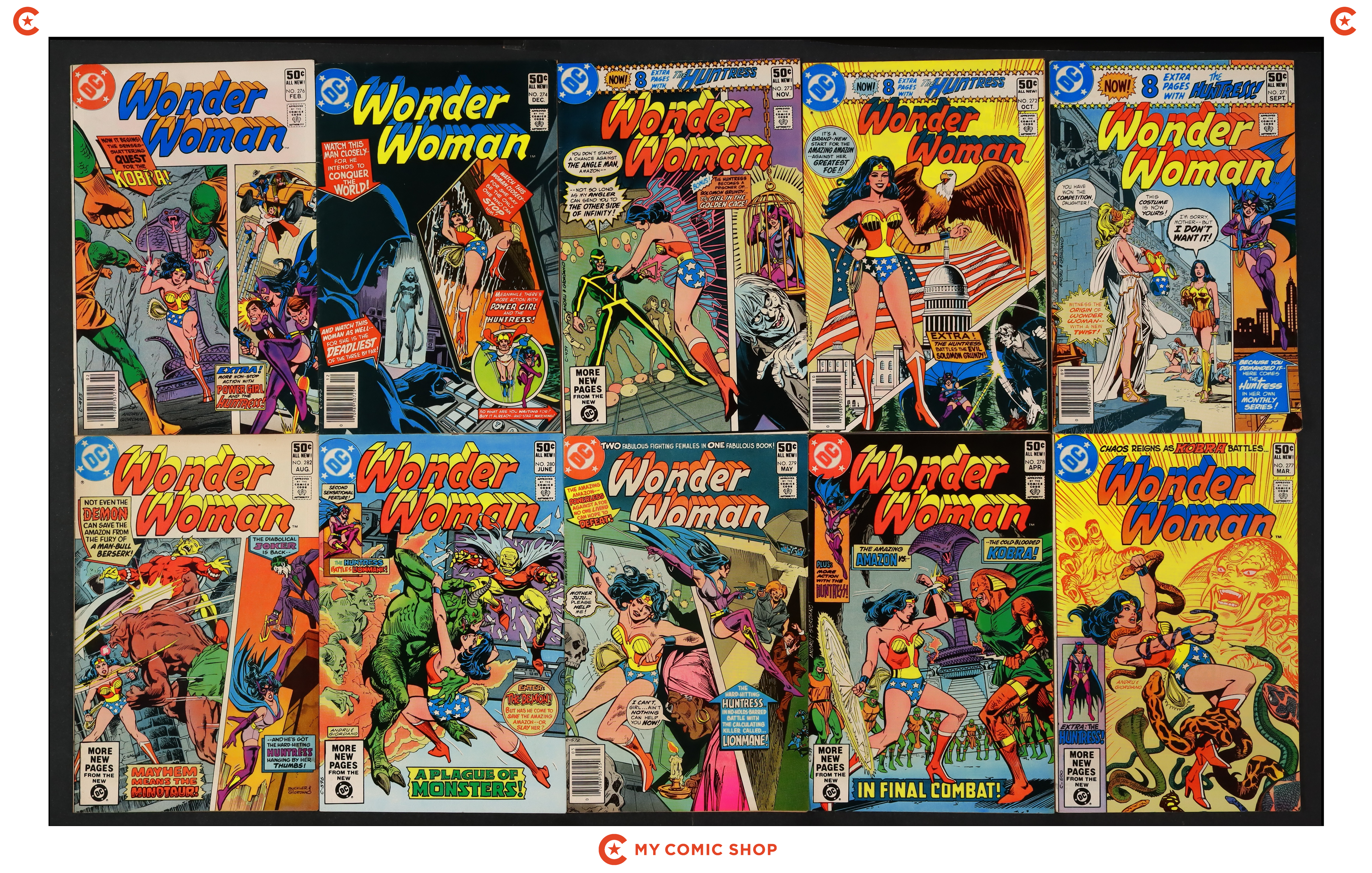 Issues 270-279 of Wonder Woman (1942 1st Series DC). Most will grade in the VF to FN range.