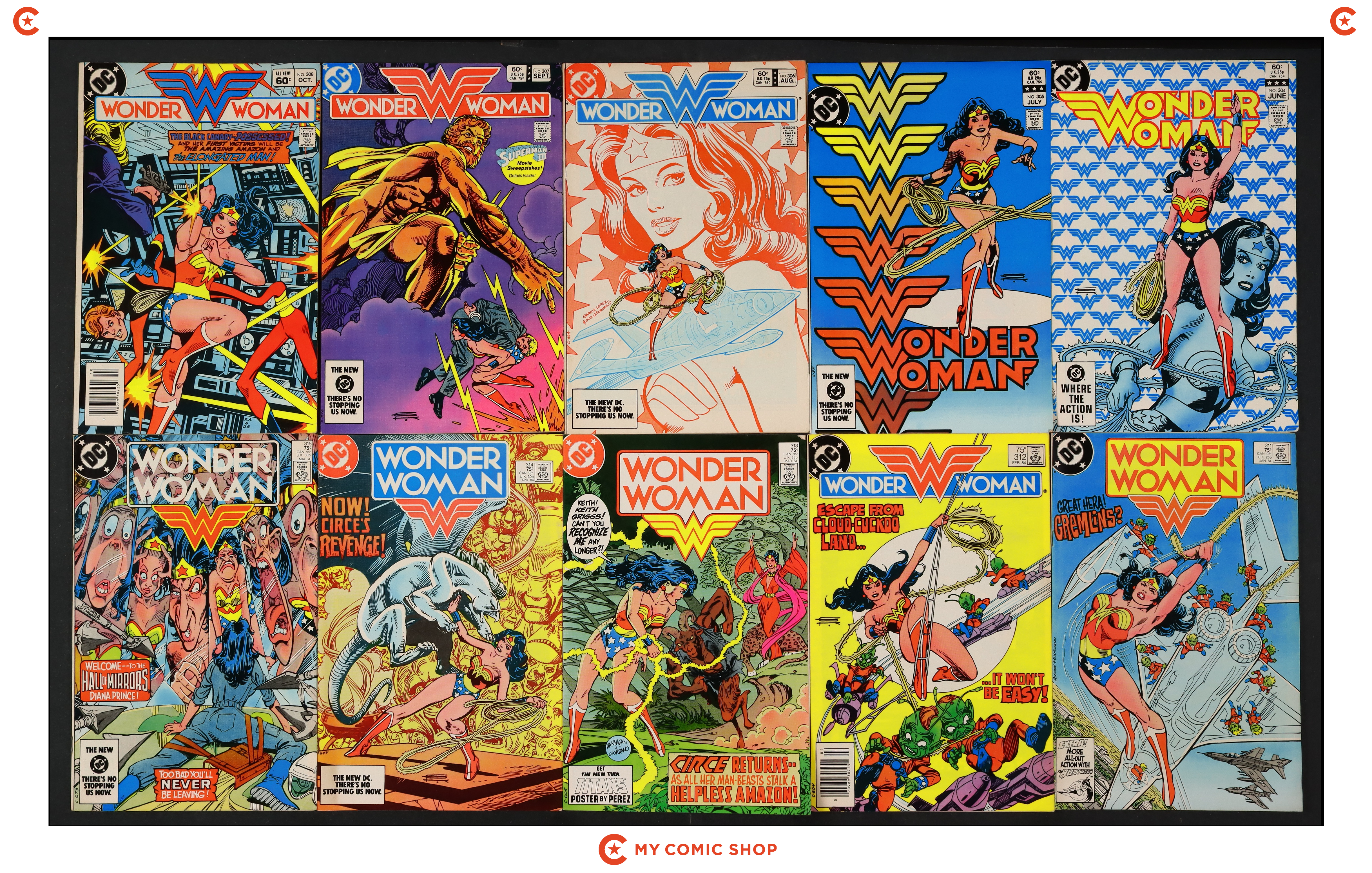 Issues 304-308, 311-315 of Wonder Woman (1942 1st Series DC). Most Will grade in the VG to FN range.