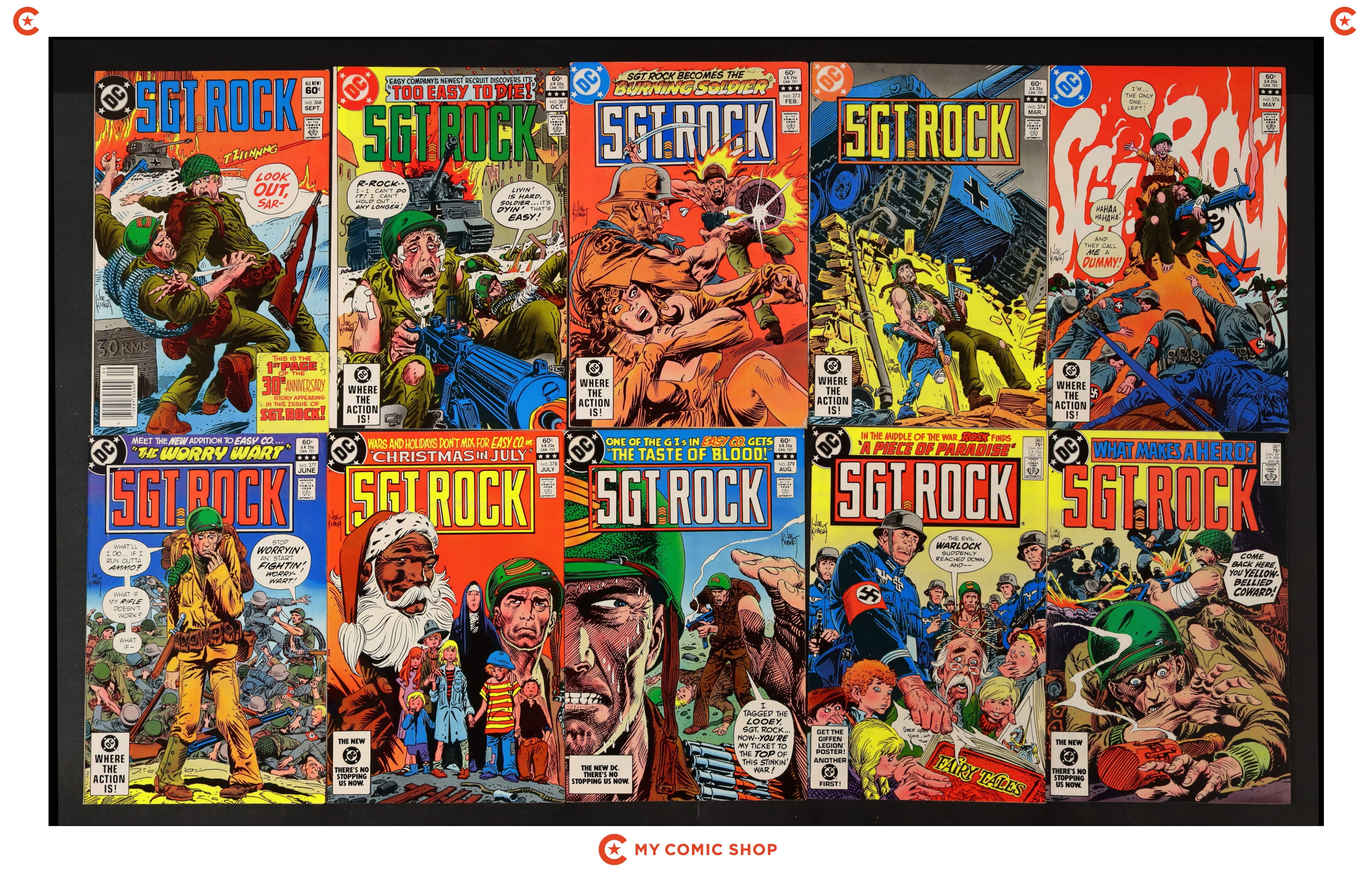 Issues 303, 305, 307, 308, 310, 311, 312, 314, 319, 366 of Sgt. Rock (1977). Most will grade in the FN- to FN/VF range.