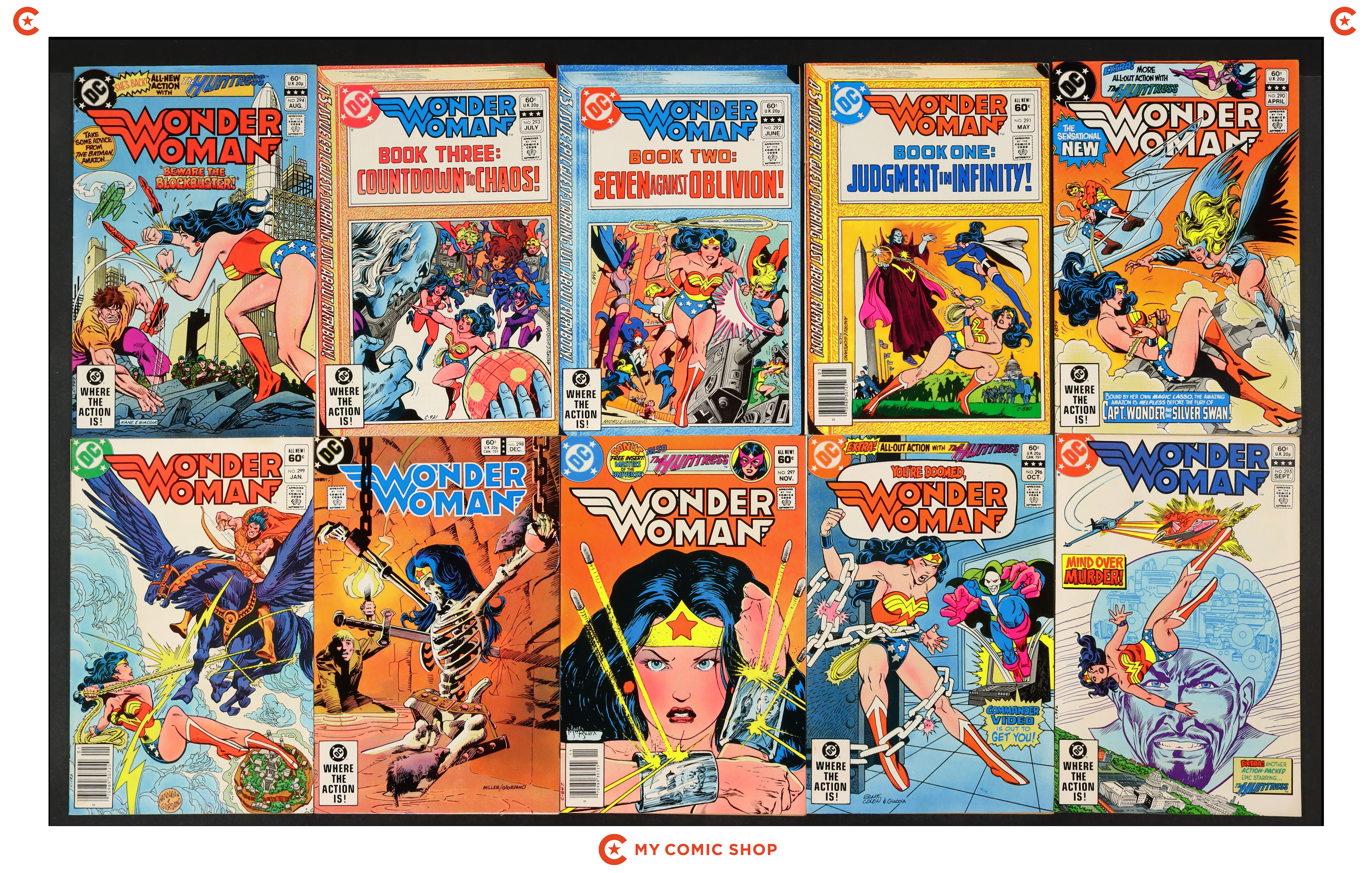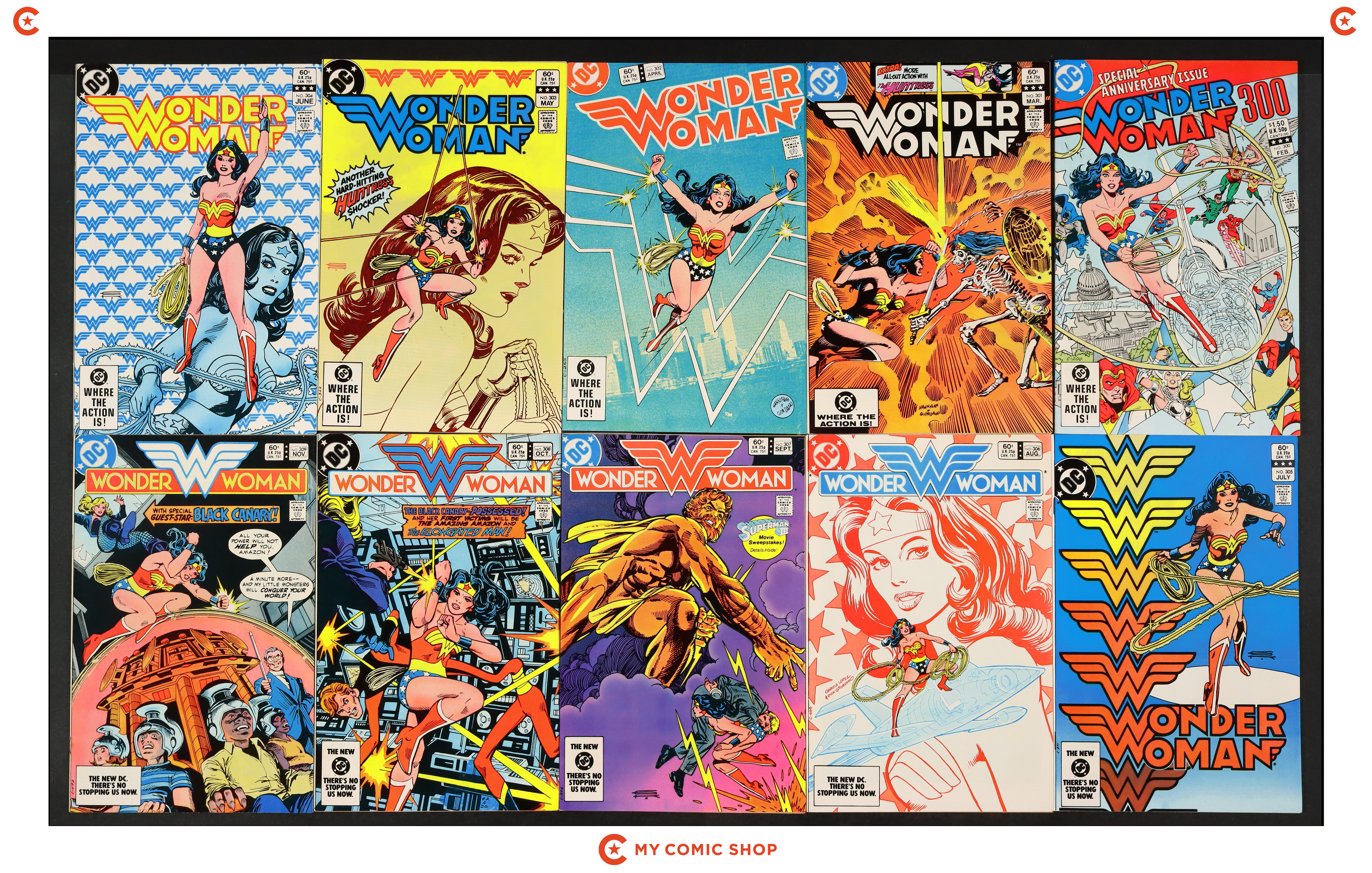 Issues 300-309 of Wonder Woman (1942 1st Series DC). Most will grade in the VF to FN range.
