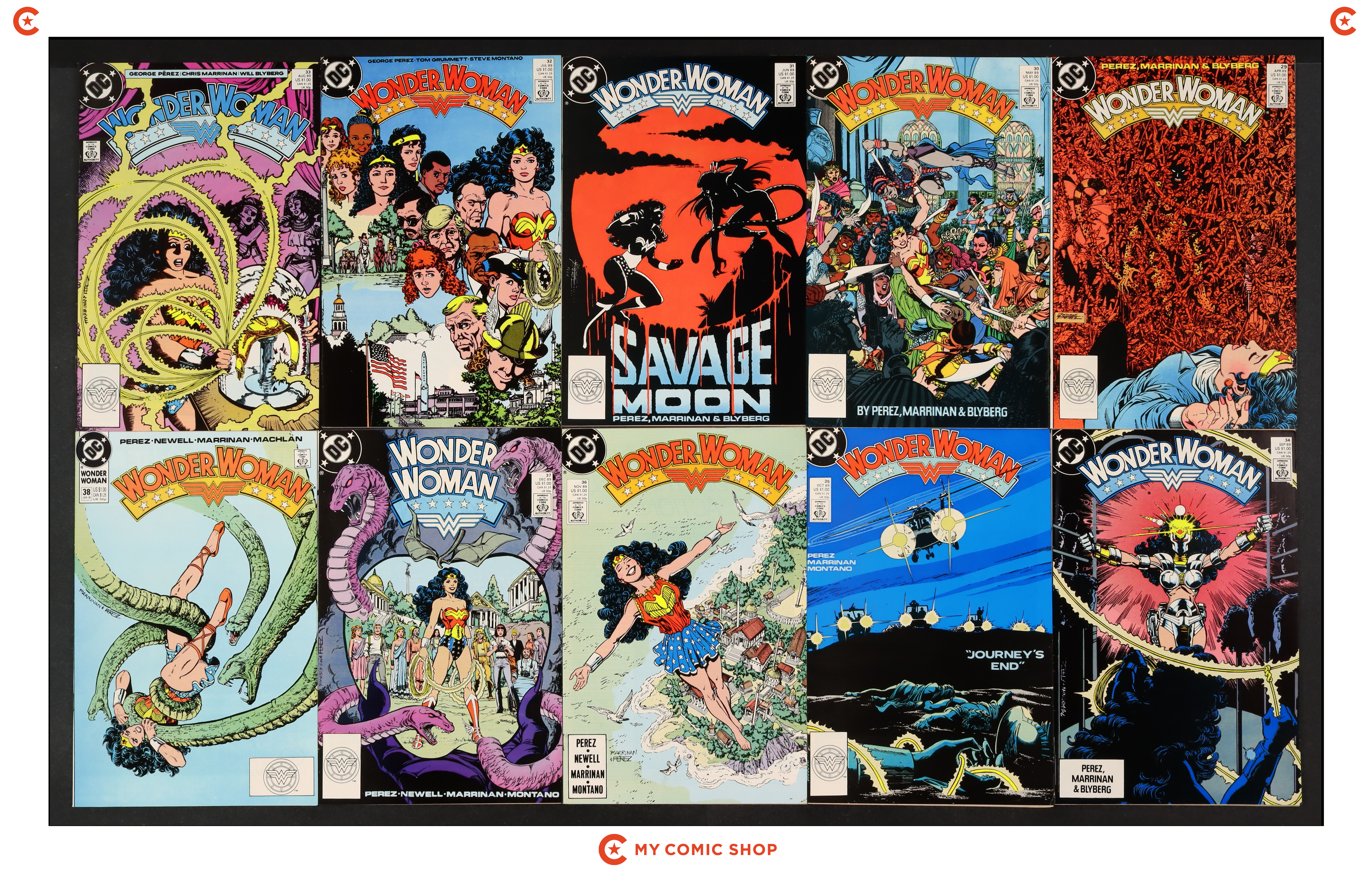 Issues 29-38 of Wonder Woman (1987 2nd Series). Most will grade in the VF to FN range.