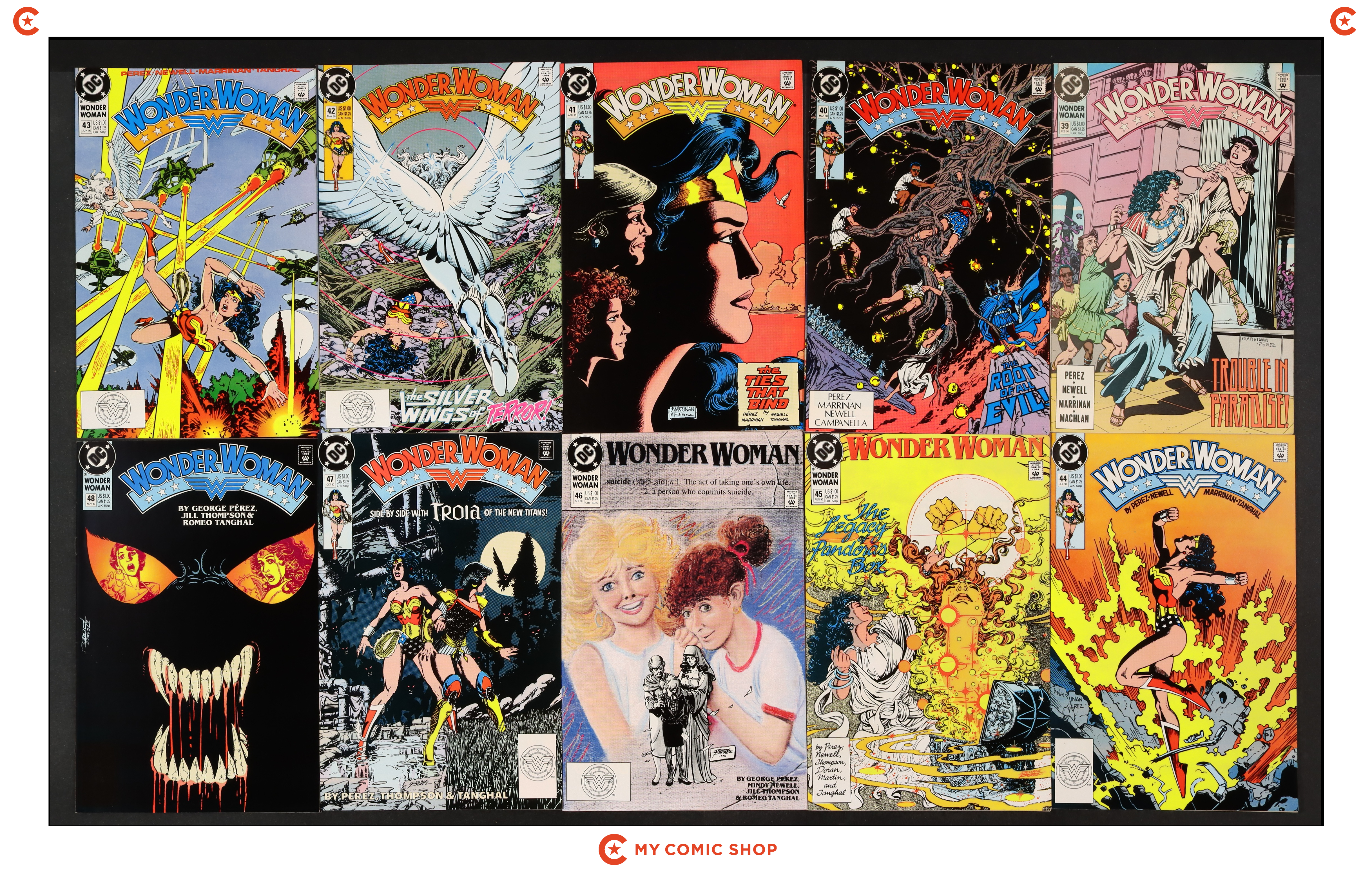 Issues 39-48 of Wonder Woman (1987 2nd Series). Most will grade in the VF to FN range.