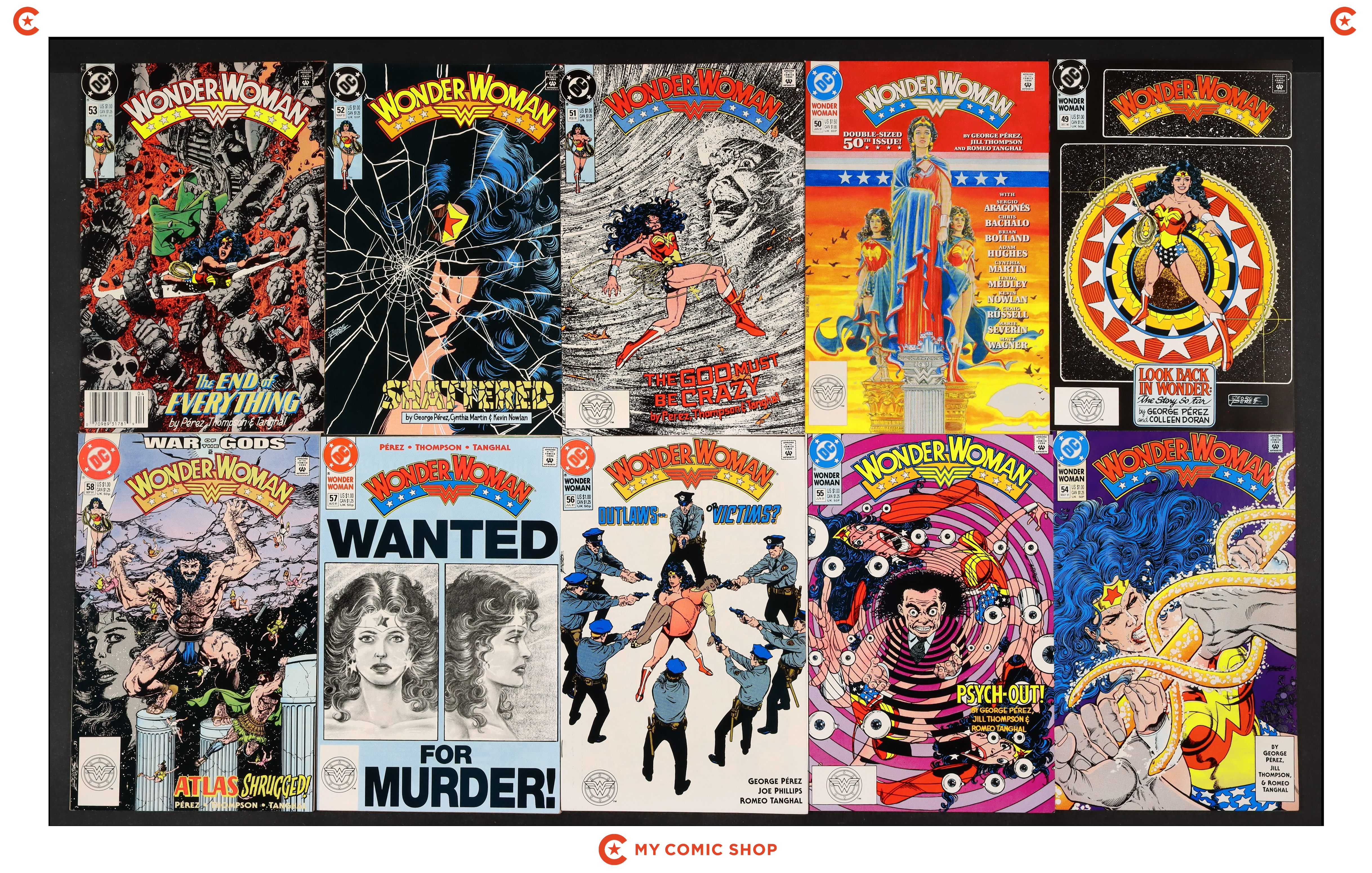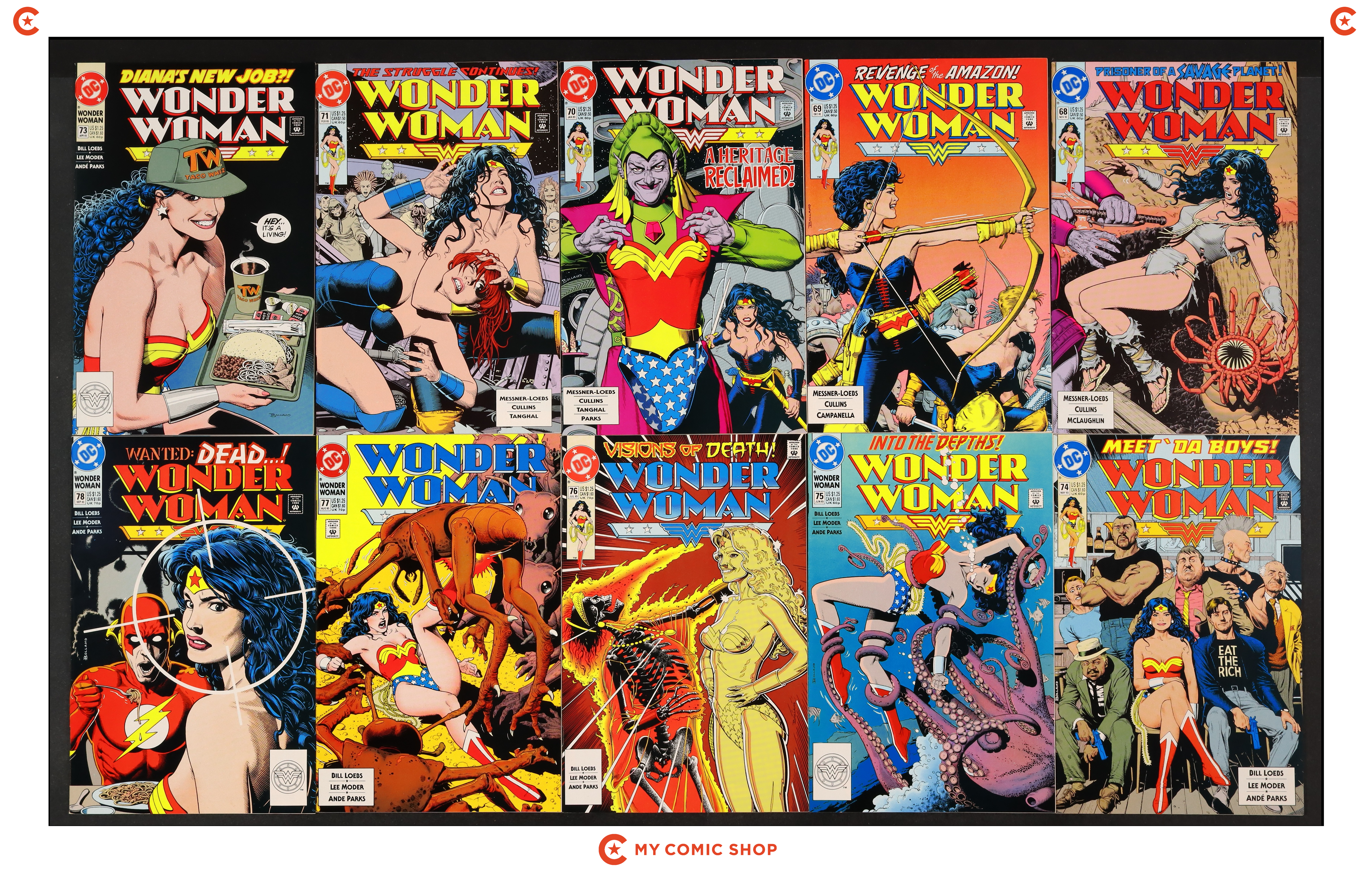Issues 49-58 of Wonder Woman (1987 2nd Series). Most will grade in the VF to FN range.