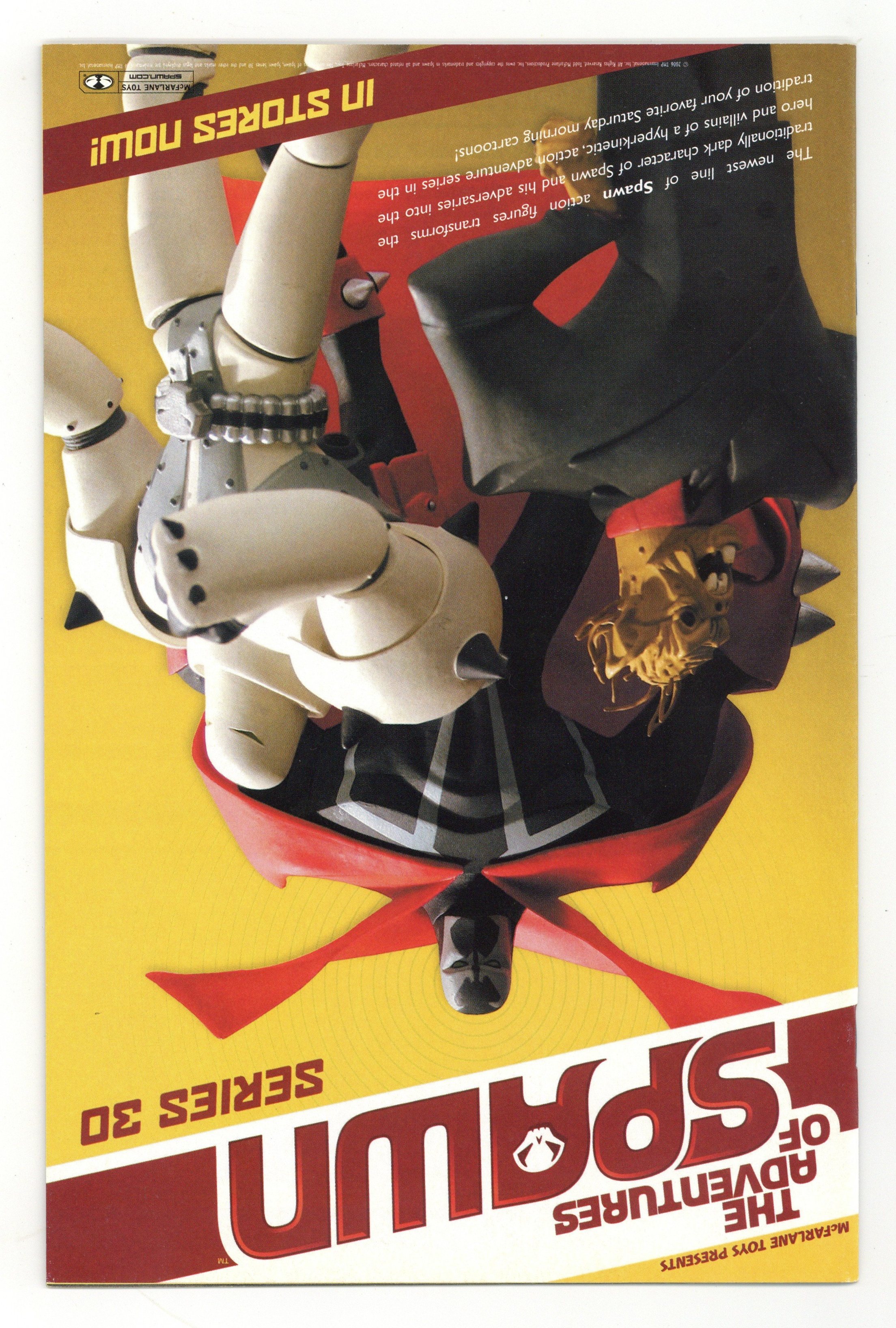 Starts May 25 Direct Edition. (W) Brian Holguin and Todd McFarlane (P) Angel Medina (I) Danny Miki (Cover) Greg Capullo and Todd McFarlane FC32pp$2.50Ongoing monthly series The Concept: Al Simmons, once the U.S. government's greatest soldier and most effective assassin, was mercilessly executed by his own men. Resurrected from the ashes of his own grave in a flawed agreement with the powers of darkness, Simmons is reborn as a creature from the depths of Hell. Disfigured, homeless and alone, this warrior now known as Spawn wanders the shadowy alleys of New York City in search of his past life. This Issue: "Loose Threads"?An old foe returns in a new guise, whipping up mischief and chaos in the shadows of the New York City alleys. But there is method in this madness, a growing web of intrigue that is quickly tightening around the Hellspawn. Meanwhile, a pair of government agents are given a top secret assignment: Find out who stole Al Simmons' body and why. Cover price $2.50.