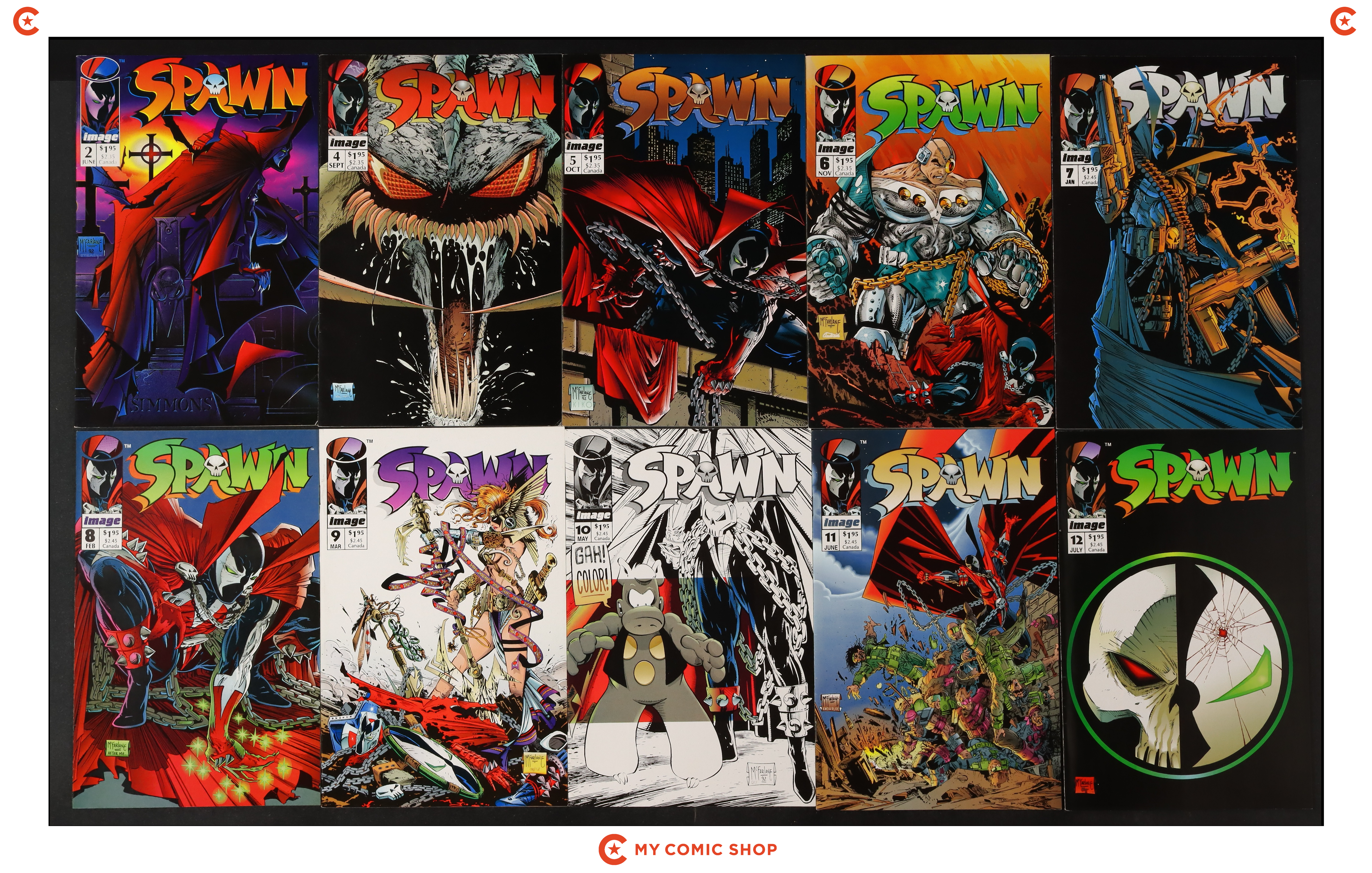 Issues 2 and 4-12 of Spawn (1992 Image). Most will grade in the VF to FN range.
