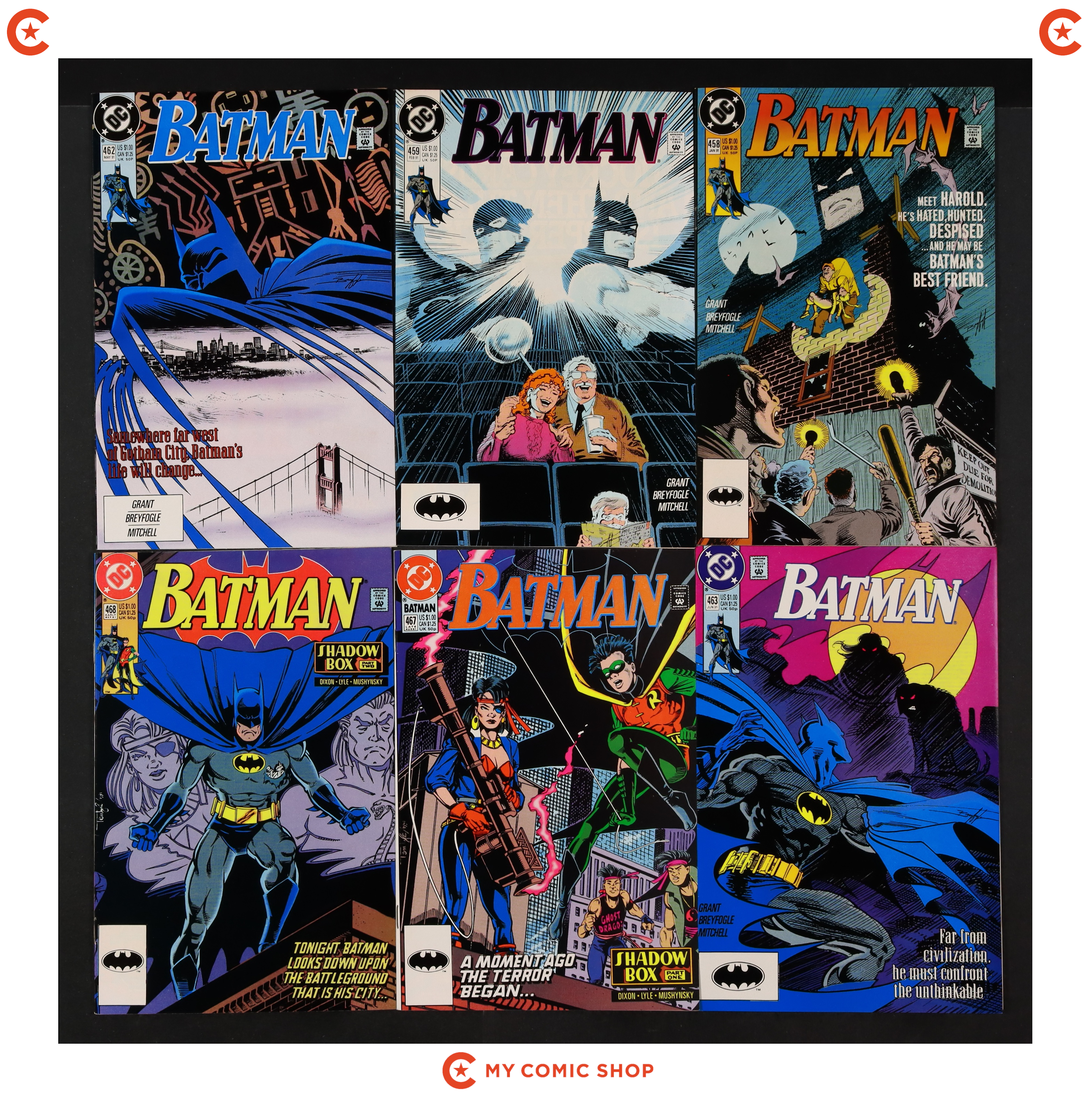 Issues 458, 459, 462, 463, 467, 468, 476, 484, 488, 489, 492A, 494 of Batman (1940). Most will grade in the FN to VF+ range.