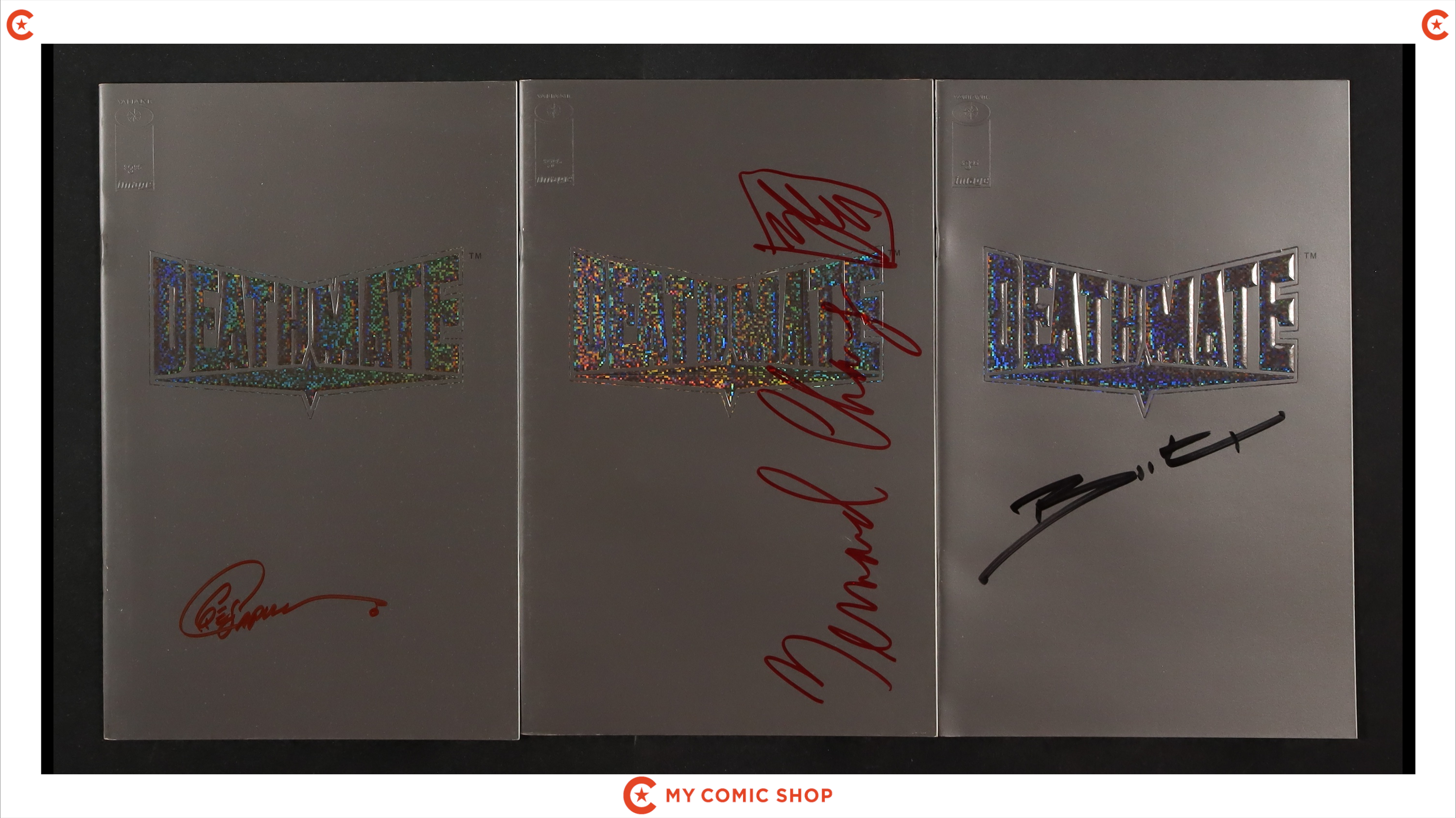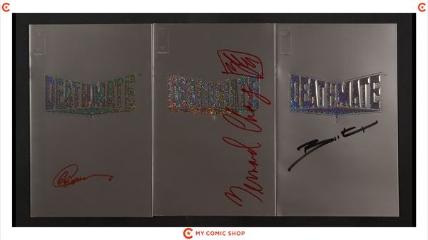 Three copies of Deathmate Tour Book (1993) #1 signed by Brett Booth, Bernard Chang, and Greg Capullo individually. No autograph certification is included. Most will grade in the FN to VF range.