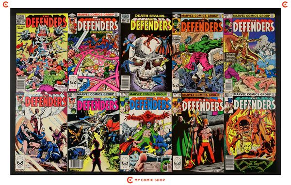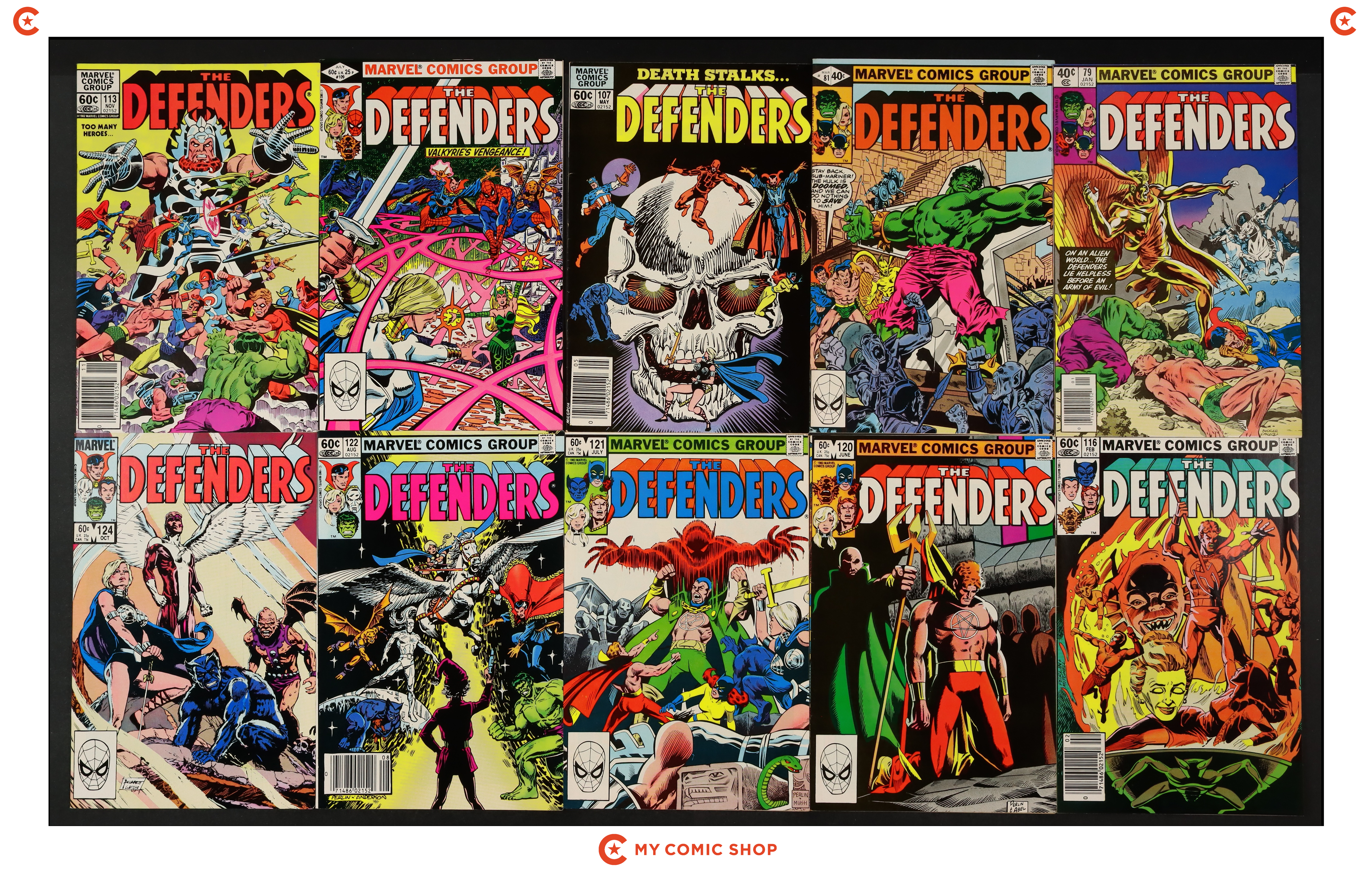 Issues 79N, 81, 107, 109D, 113, 116, 120, 121, 122, 124 of Defenders (1972 1st Series). Most will grade in the FN+ to VF range.