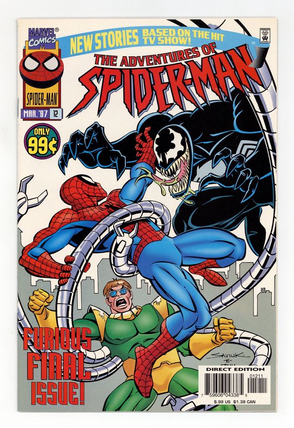 Starts Later today Cover pencils by Alex Saviuk, inks by Rob Stull. Union Part Two, script by Glenn Greenberg, pencils by Alex Saviuk, inks by Rob Stull and Al Milgrom; Spidey has to stop the deadly duo of Doc Ock and Venom before they hurt Mary Jane. Spider-Man Episode Guide by Andy Mangels. Continuing the all-new adventures based on the hit animated show! 36 pgs. Cover price $0.99.