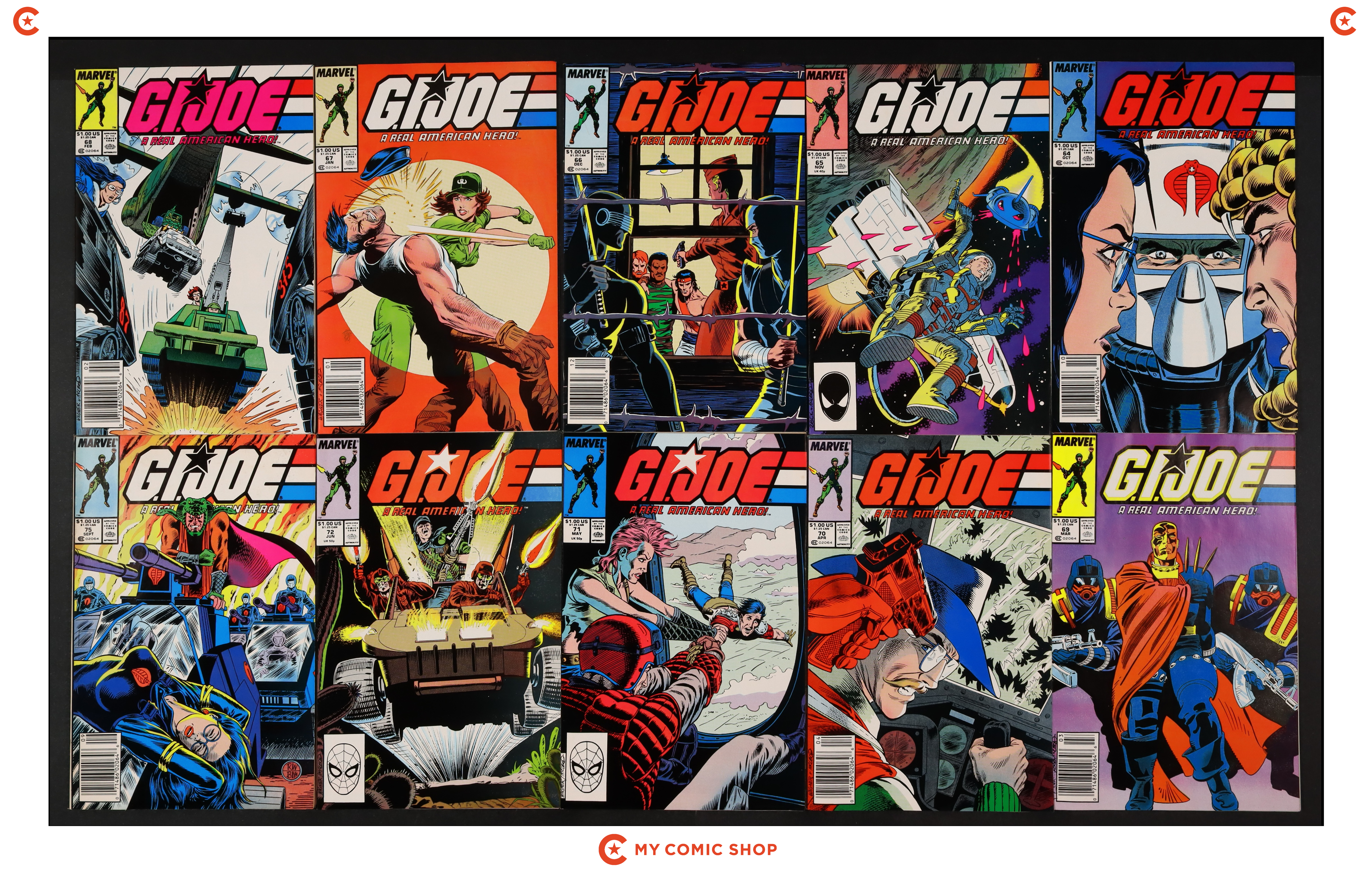 Issues 56N, 57, 58, 59D, 60-65 of GI Joe A Real American Hero (1982 Marvel). Most will grade in the VG/FN range, with 58-60 grading at FR/GD.