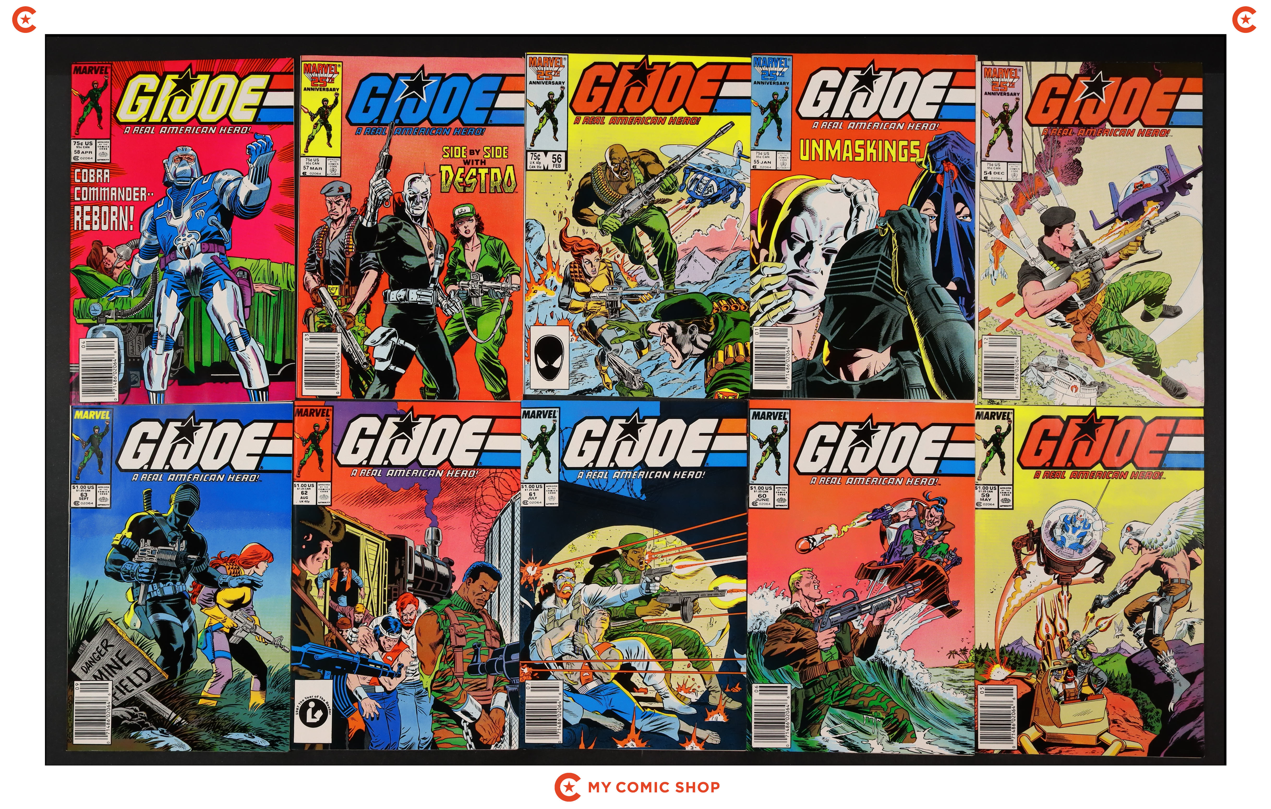 Issues 52N, 53N, 54, 55, 56D, 57, 58, 59D, 60, 61 of GI Joe A Real American Hero (1982 Marvel). Most will grade in the GD/VG to FN range.