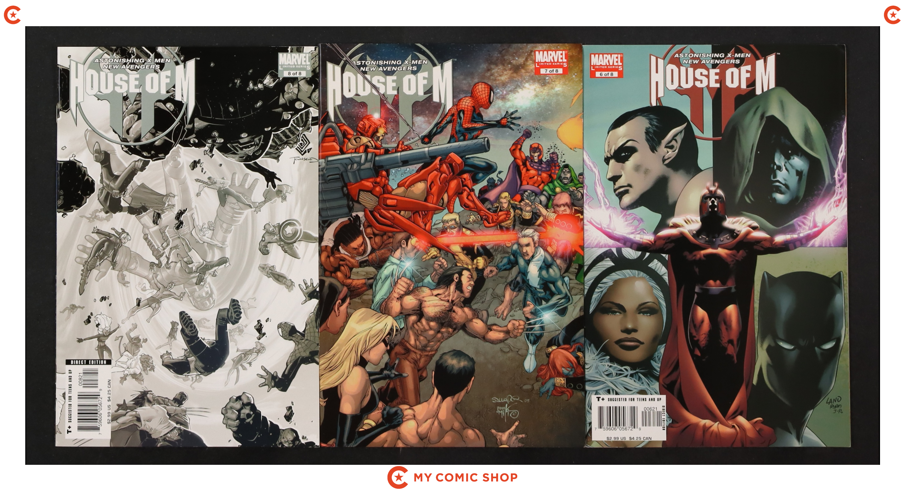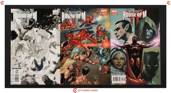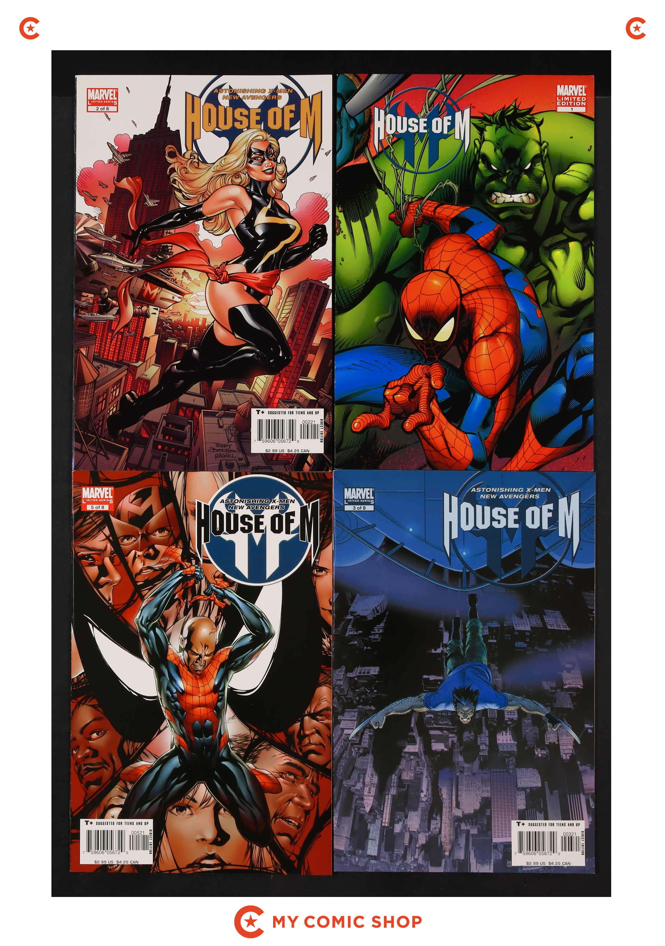 Issues 1E, 2B, 3B, 5B, 6B, 7B, 8B of House of M (2005). Most will grade in the FN to VF range.