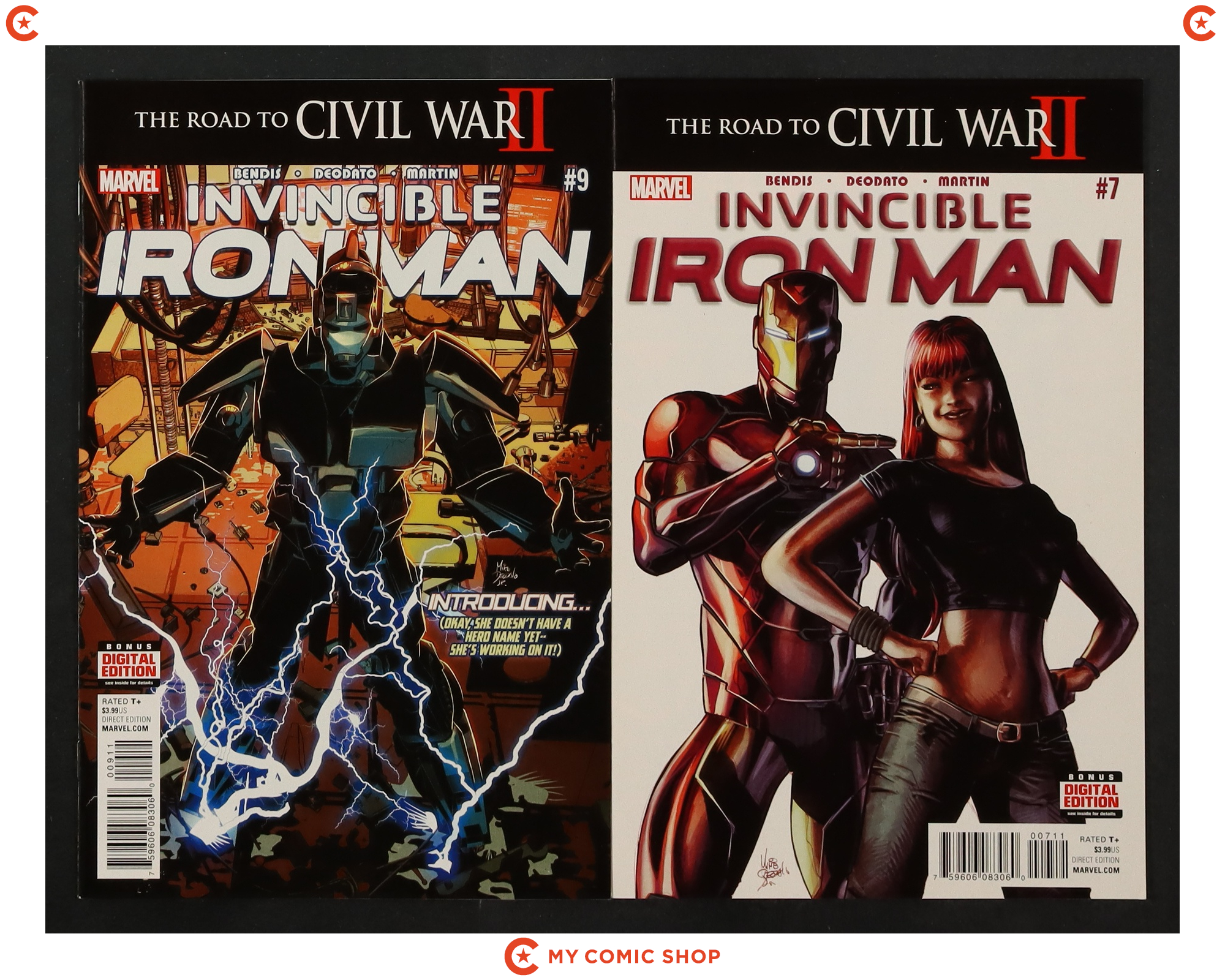 Issues 7A and 9A of Invincible Iron Man (2015 2nd Series). Most will grade in the NM to VF+ range.