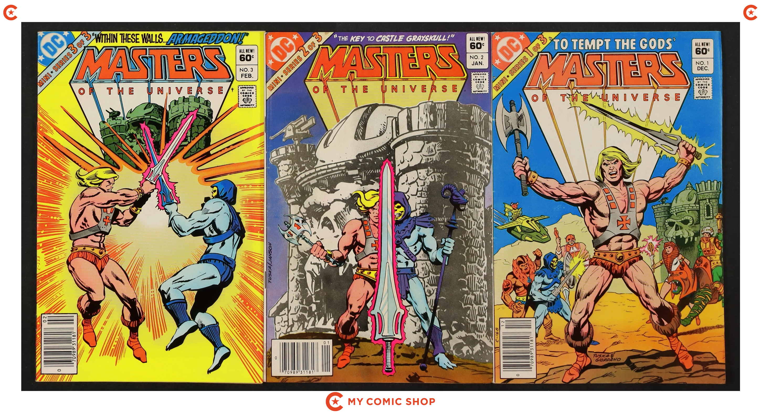 Issues 1N, 2N, 3N of Masters of the Universe (1982 DC). Most will grade in the VG/FN to FN range.
