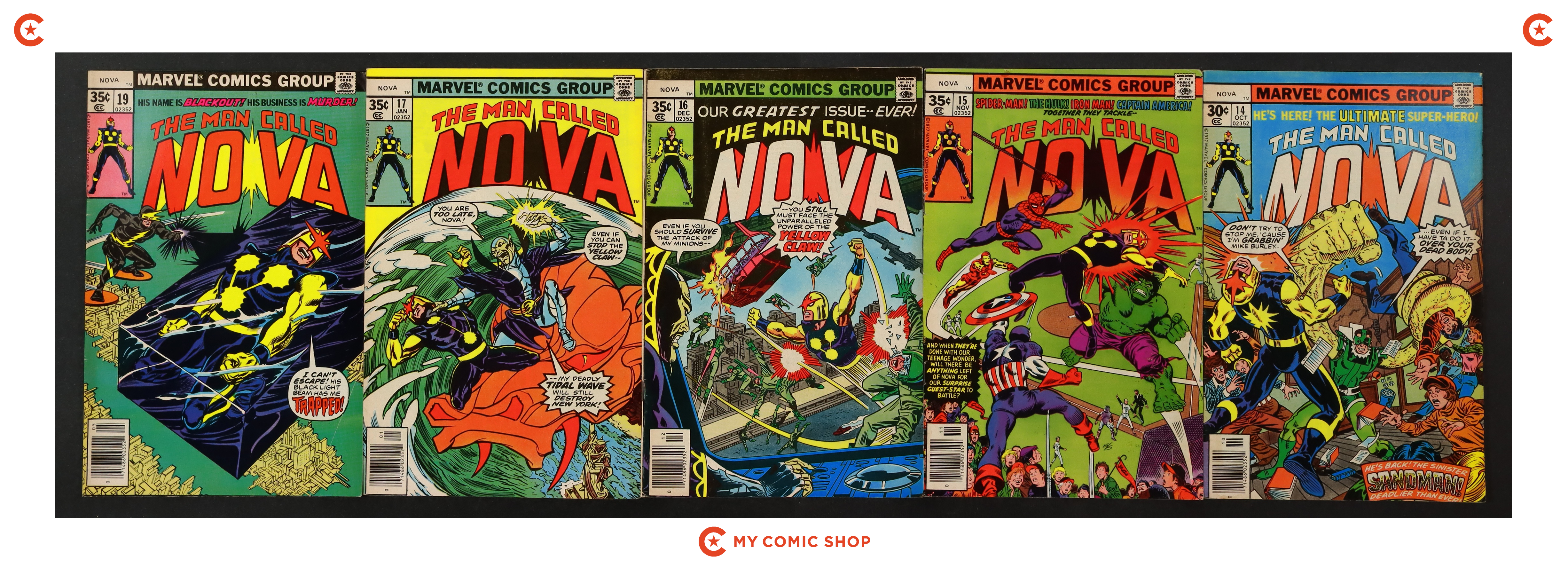 Issues 1-3, 7-17, and 19 of Nova (1976 1st Series). Most will grade in the FN to VG range.