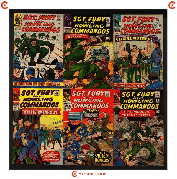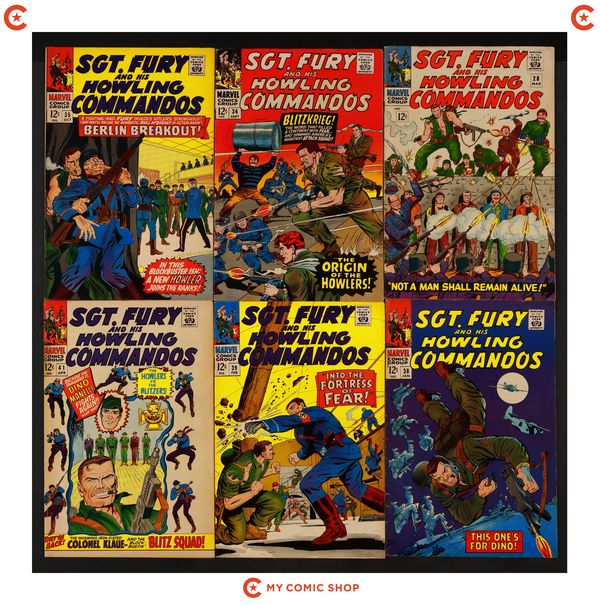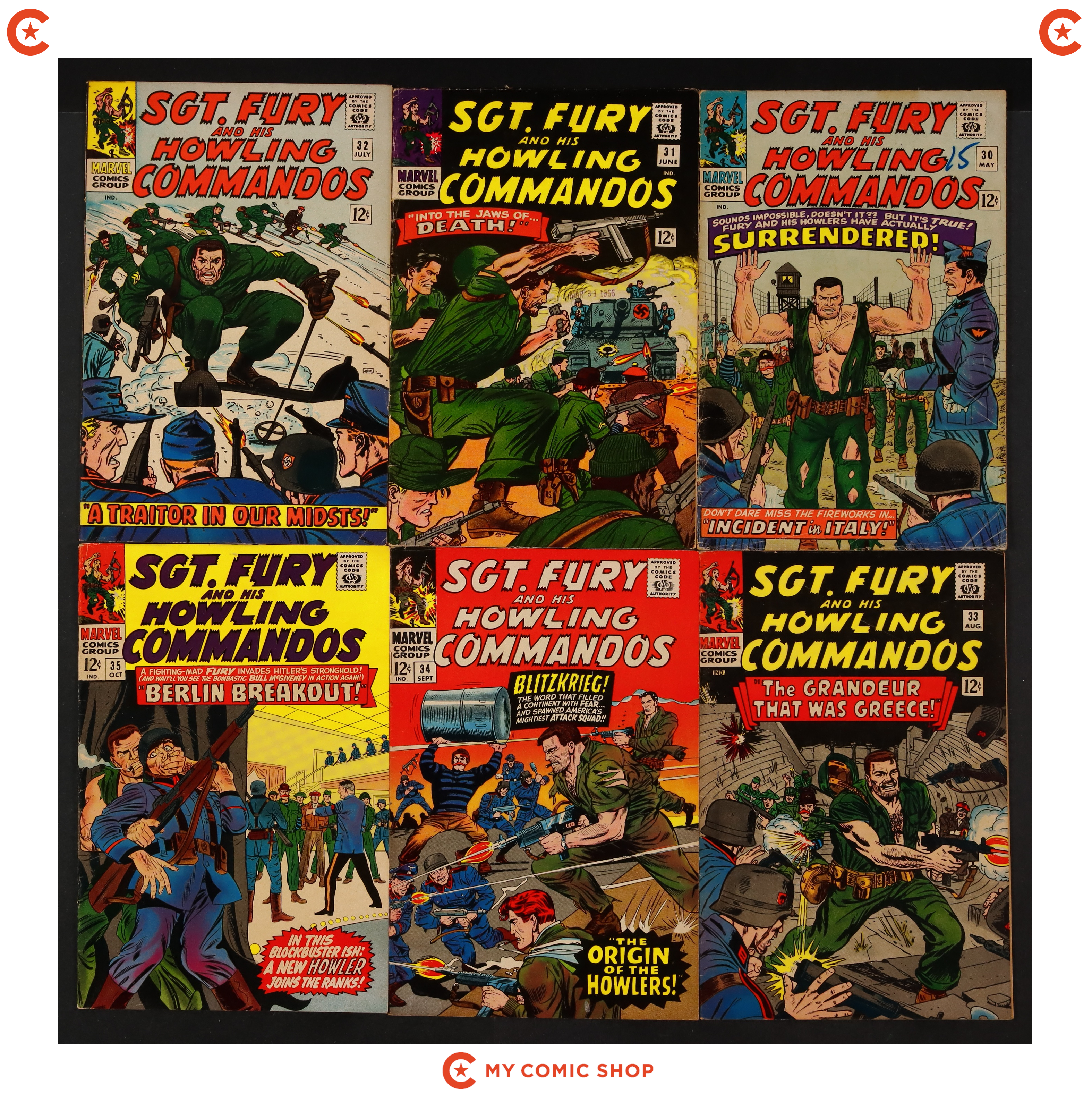 Issues 158-167 of Sgt. Fury (1963) signed by Dick Ayers (164-166 signed first page). Most will grade in the VG to FN range with 167 grading GD. No autograph certification is included.