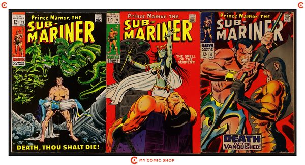 Issues 6, 9, 13 of Sub-Mariner (1968 1st Series). Most will grade in the GD to VG range.