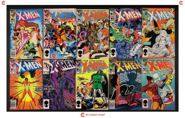Issues 202, 203, 206, 208, 210, 211, 213, 215, 216, and 218 of Uncanny X-Men (1963 1st Series). Most will grade in the FN to VG range.