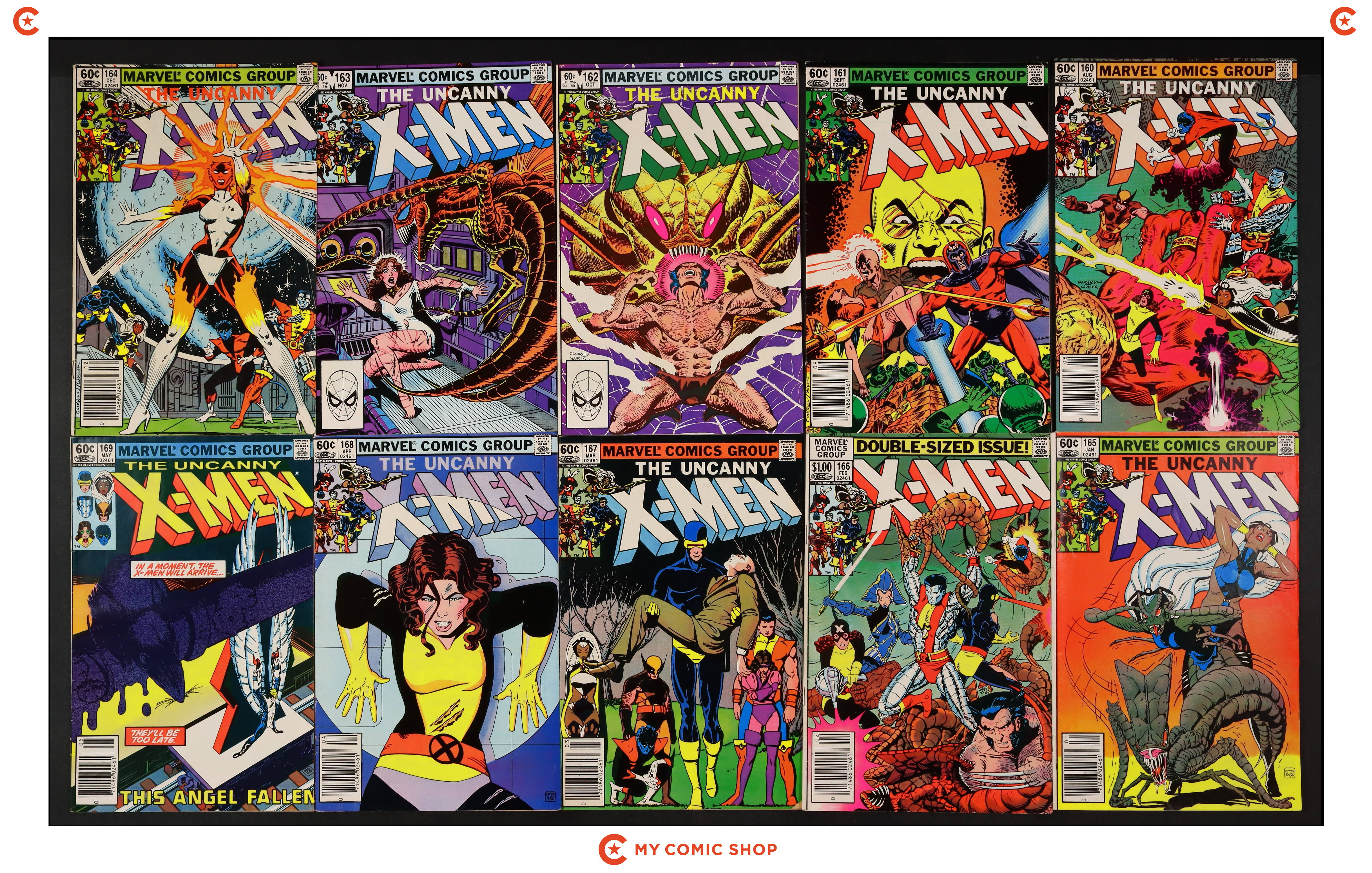 Issues 160N-164N, 165, 167N, and 168-170 of Uncanny X-Men (1963 1st Series). Most will grade in the FN to VG range.