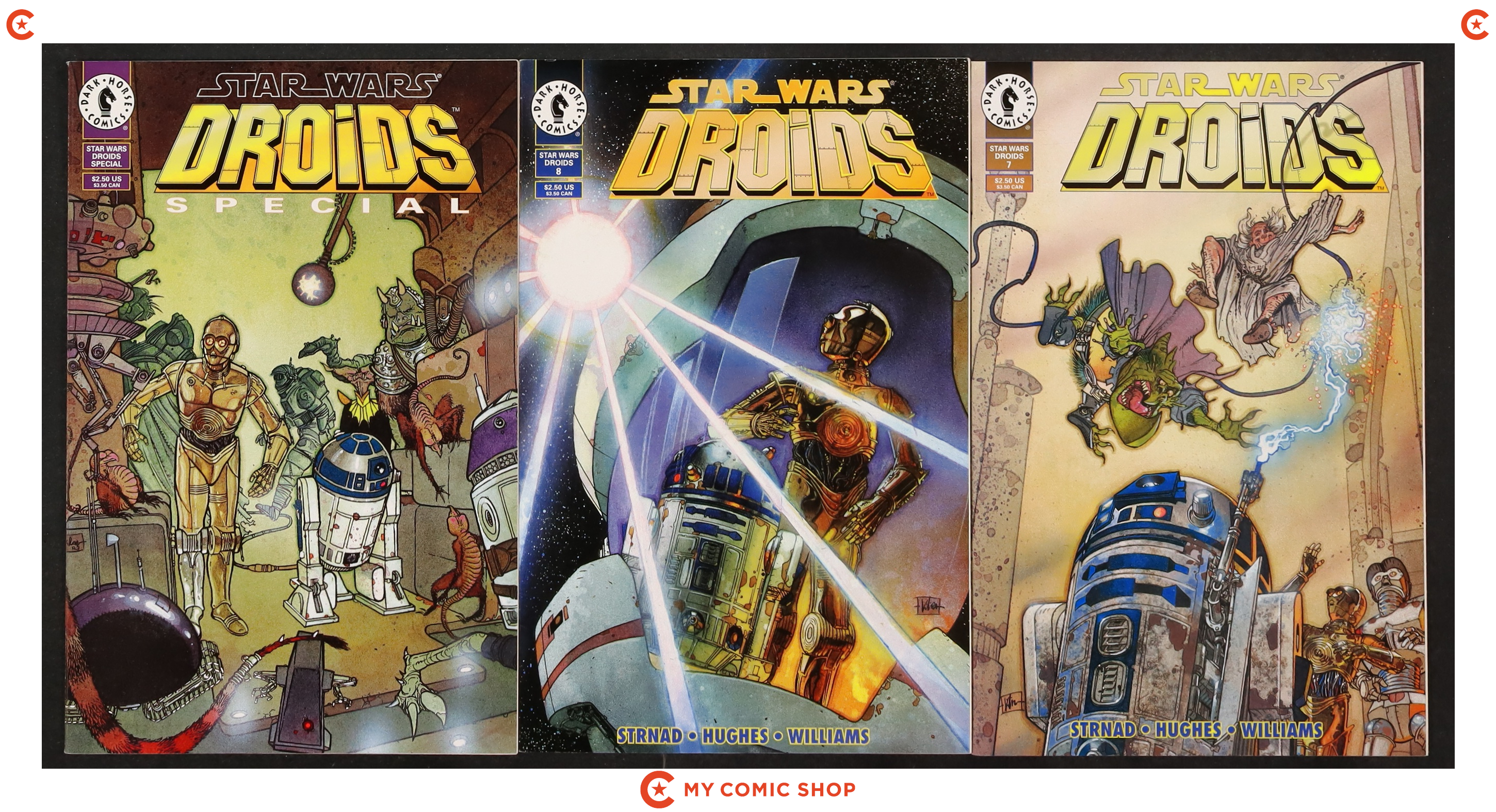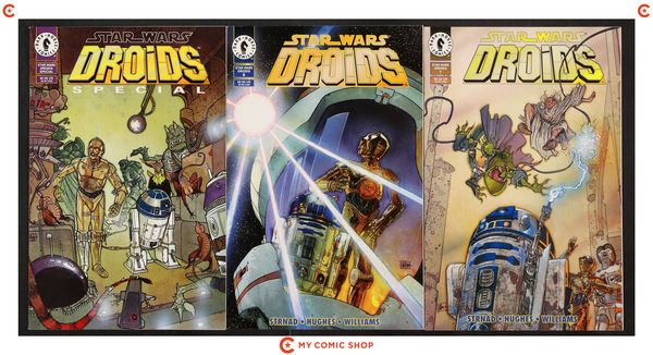 Issues 1-8 of Star Wars Droids (1995 3rd Series); and 1 of Star Wars Droids Special (1995). Most will grade in the VF range with a couple grading FN.