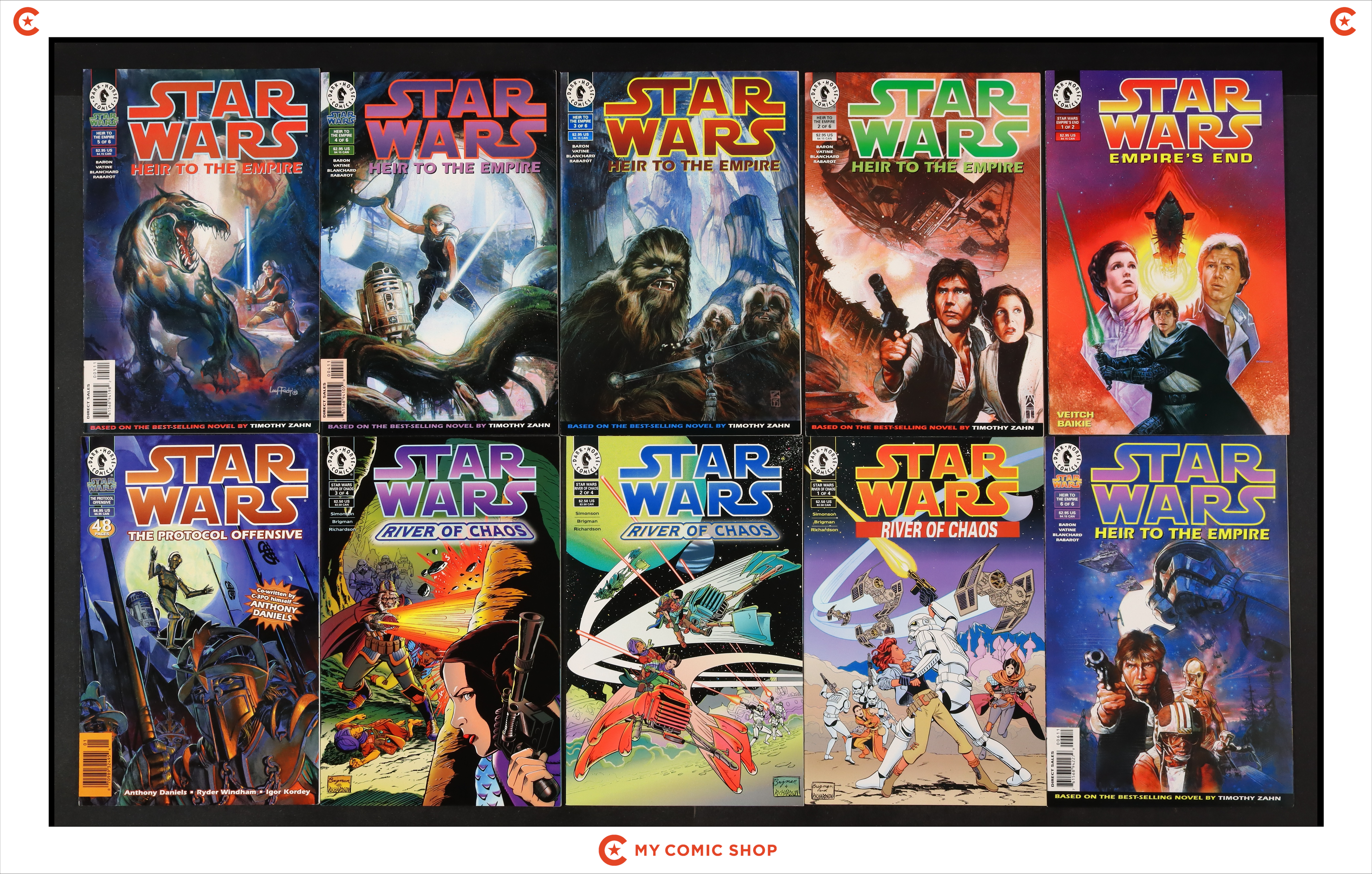 Issues 1 of Star Wars Empire's End (1995); 2-6 of Star Wars Heir to the Empire (1995); 1-3 of Star Wars River of Chaos (1995); and 1 of Star Wars The Protocol Offensive (1997). Most will grade in the VF to FN+ range.