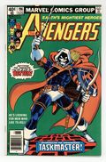 Starts Jan 3 Newsstand Edition. "The Terrible Toll of the Taskmaster" Guest-starring Ant-Man. Script by David Michelinie. Pencils by George Perez. Inks by Jack Abel. Cover by George Perez and Joe Rubinstein. A brand new villain, the Taskmaster, has turned the tables on the Wasp, Yellowjacket, and Ant-Man! The three insect-like super-heroes are prisoners inside the Taskmaster's training academy! The good news is that seven avengers are waiting outside the training compound, but the bad news...none of them know that their teammates are in grave danger! However, Earth Mightiest Heroes follow the ants, and the trail leads to the Taskmaster! Is the villain with the photographic reflexes ready to battle the Avengers? Choose wisely dear Taskmaster! First (full) appearance and origin of the Taskmaster. (Notes: The Taskmaster appears next in Marvel Team-Up 103. The letters page includes a letter from comics writer Kurt Busiek.) 36 pages Cover price $0.40.