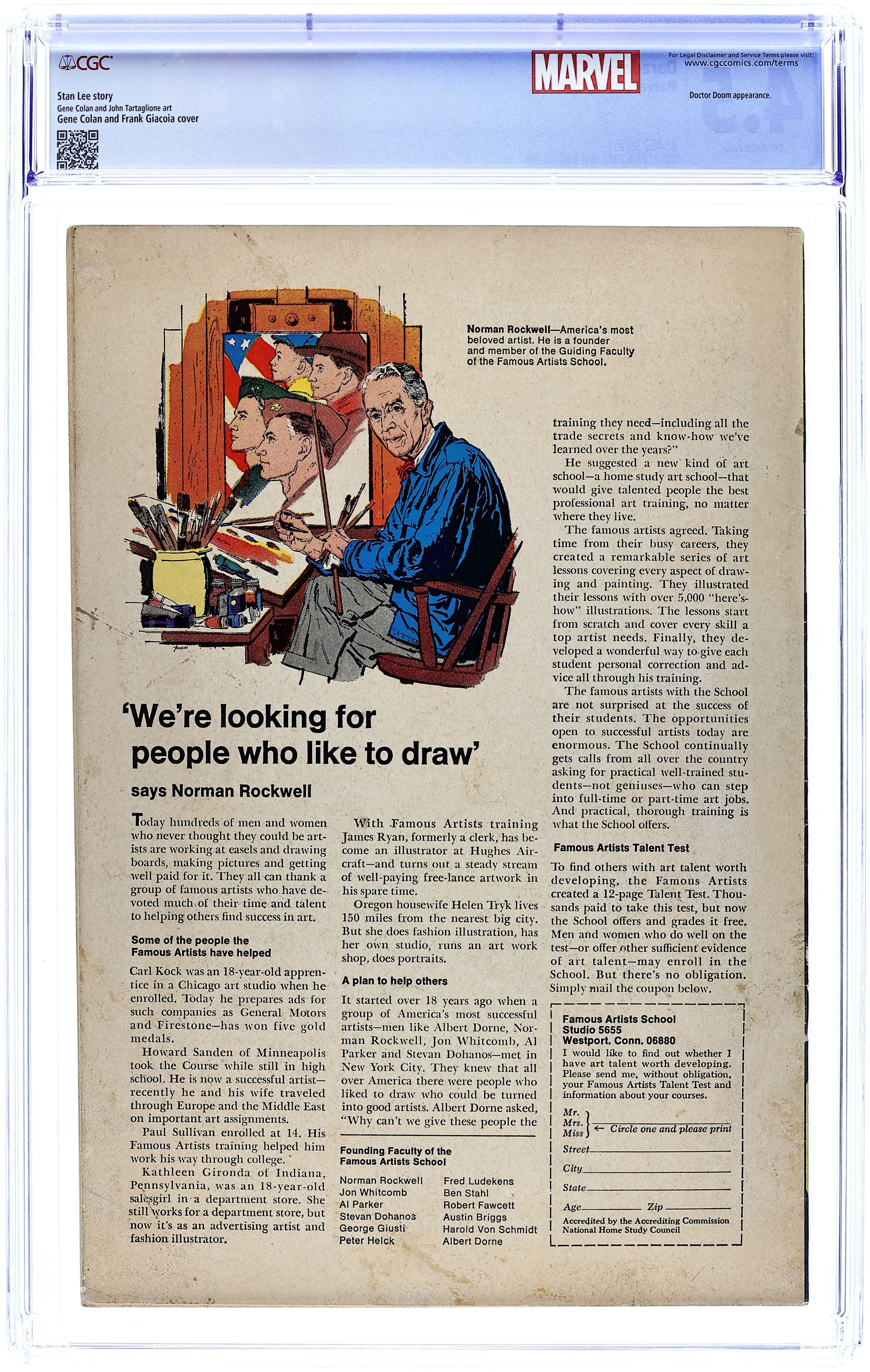 Starts Dec 22 Cover pencils by Gene Colan, inks by Frank Giacoia. The Living Prison!, script by Stan Lee, pencils by Gene Colan, inks by Frank Giacoia; After a few battles and not a few episodes of identity confusion, Daredevil and Doctor Doom are reverted back to their original bodies, but the Fantastic Four doesn't know that; story continued in Fantastic Four #73. Letter to the editor from writer Peter Sanderson. 32 pgs. Cover price $0.12. Cover price $0.12.