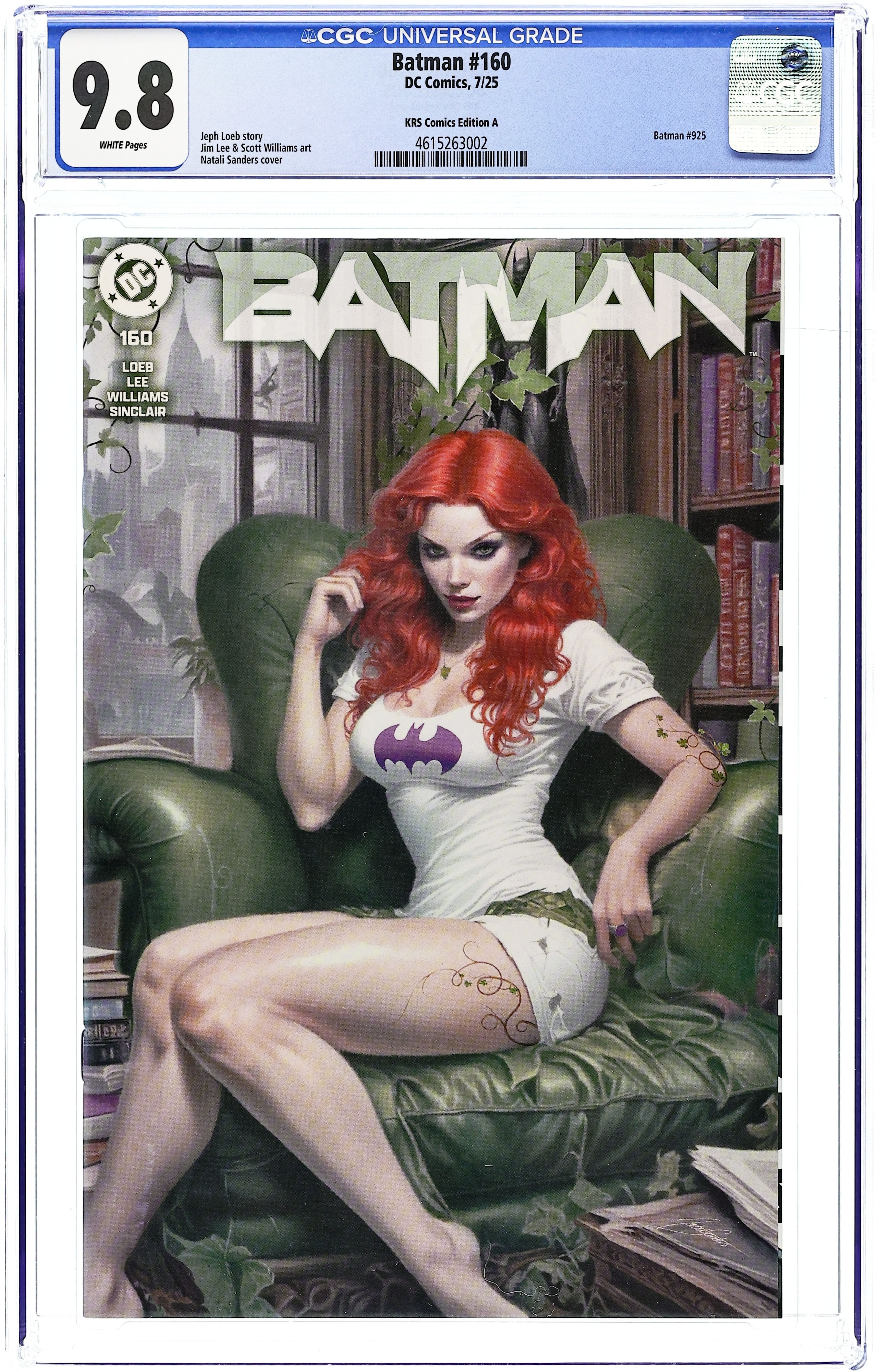 Starts May 11 KRS Comics Exclusive Variant Cover by Natali Sanders. Written by Jeph Loeb. Art by Jim Lee, Scott Williams. H2SH WITH JEPH LOEB AND JIM LEE PART 3! The gentleman's name is Silence, and his alliance with Hush will destroy Batman! 40 pages, full color. Rated T+