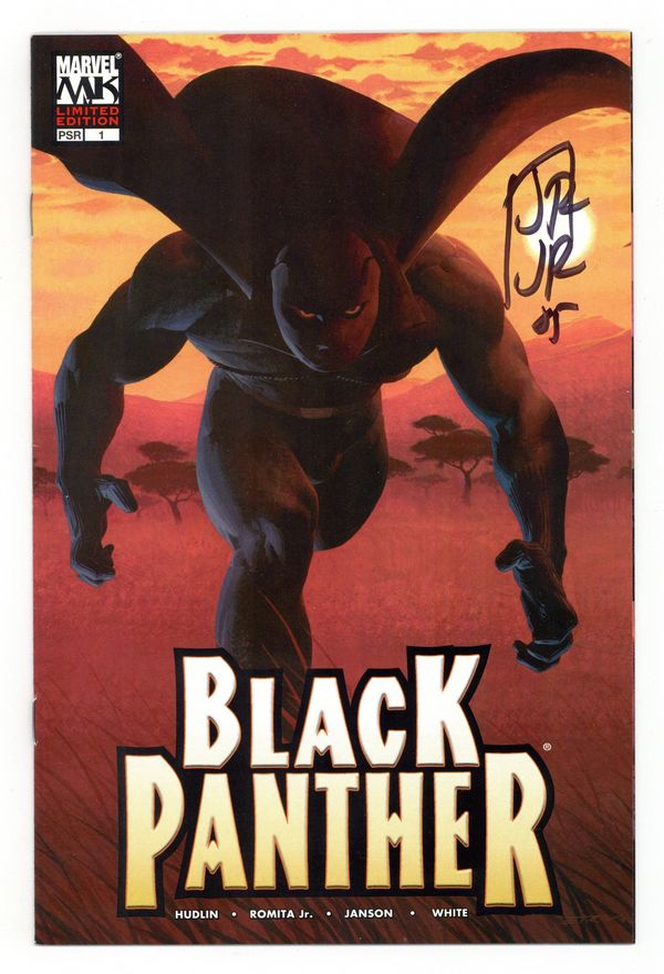 Starts Apr 27 1st appearance of Shuri (later becomes the new Black Panther). Written by Reginald Hudlin Penciled by John Romita Jr. Cover by Esad Ribic "WHO IS THE BLACK PANTHER?" The Wakandan super hero is back with Hollywood heavyweight Hudlin (HOUSE PARTY, BOOMERANG) and fan favorite Romita Jr. (WOLVERINE, AMAZING SPIDER-MAN,) teaming up to deliver a book that's sure to excite true believers. The Black Panther's origin is retold in a cinematic scope with social satire and all-out action. "Who is the Black Panther?" Part 2: While a team of super-powered mercenaries prepares their assault on Wakanda, a contest is underway in that warrior kingdom: Who will be the next Black Panther? Part 2 (of 6). 32 PGS./Marvel PSR ...$2.99 Cover price $2.99.
