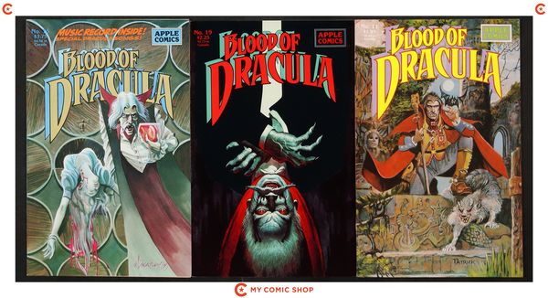 Issues 12-15R, 16-19 of Blood of Dracula (1987), and issues 1, 2 of Big Bad Blood of Dracula (1991). Most will grade in the FN to VF range.