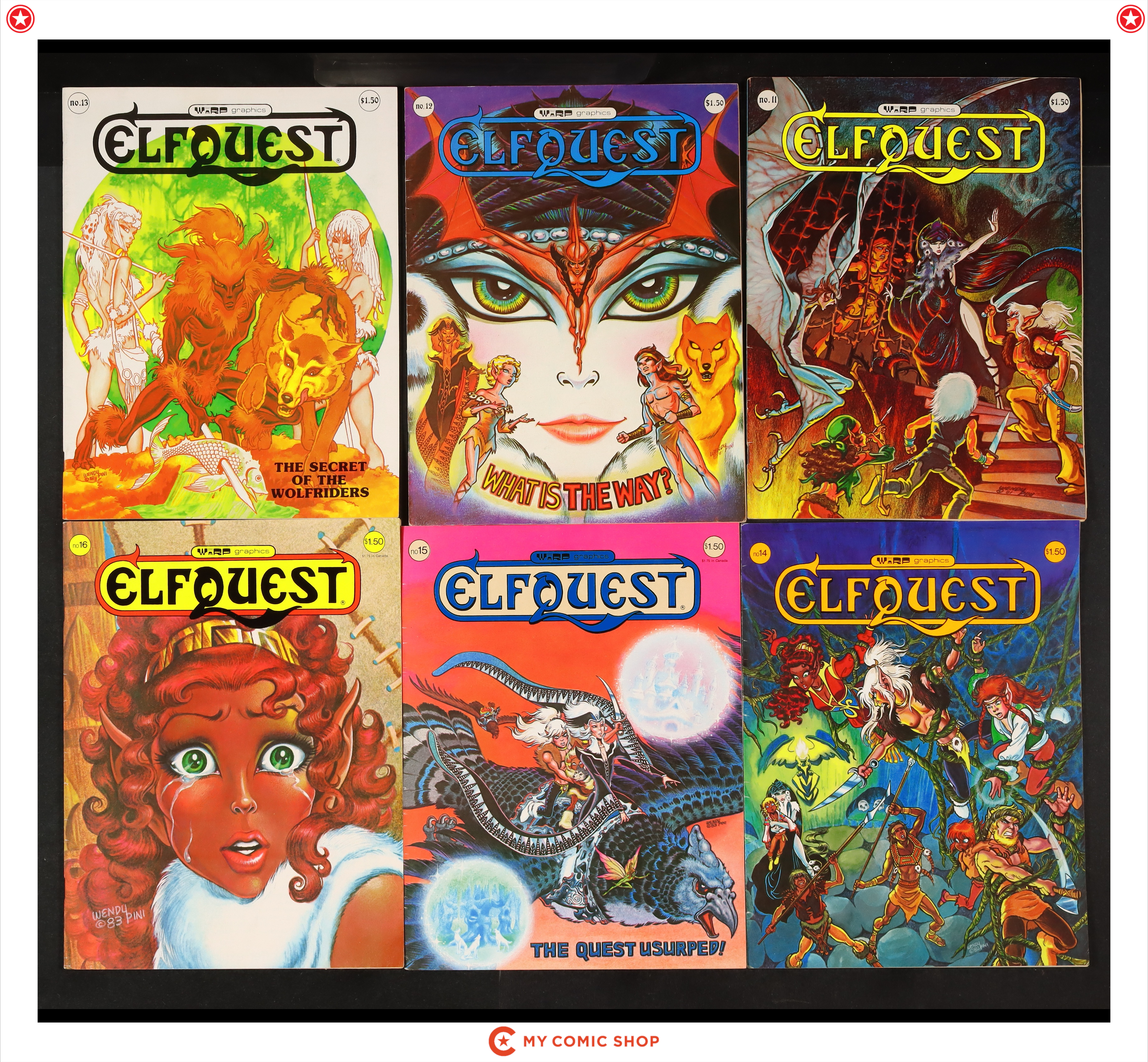 Issues 11, 12, 13, 14, 15, 16, 17, 18, 19, 20 of Elfquest (1978 Warp Graphics) Magazine. Most will grade in the GD/VG to VG/FN range.