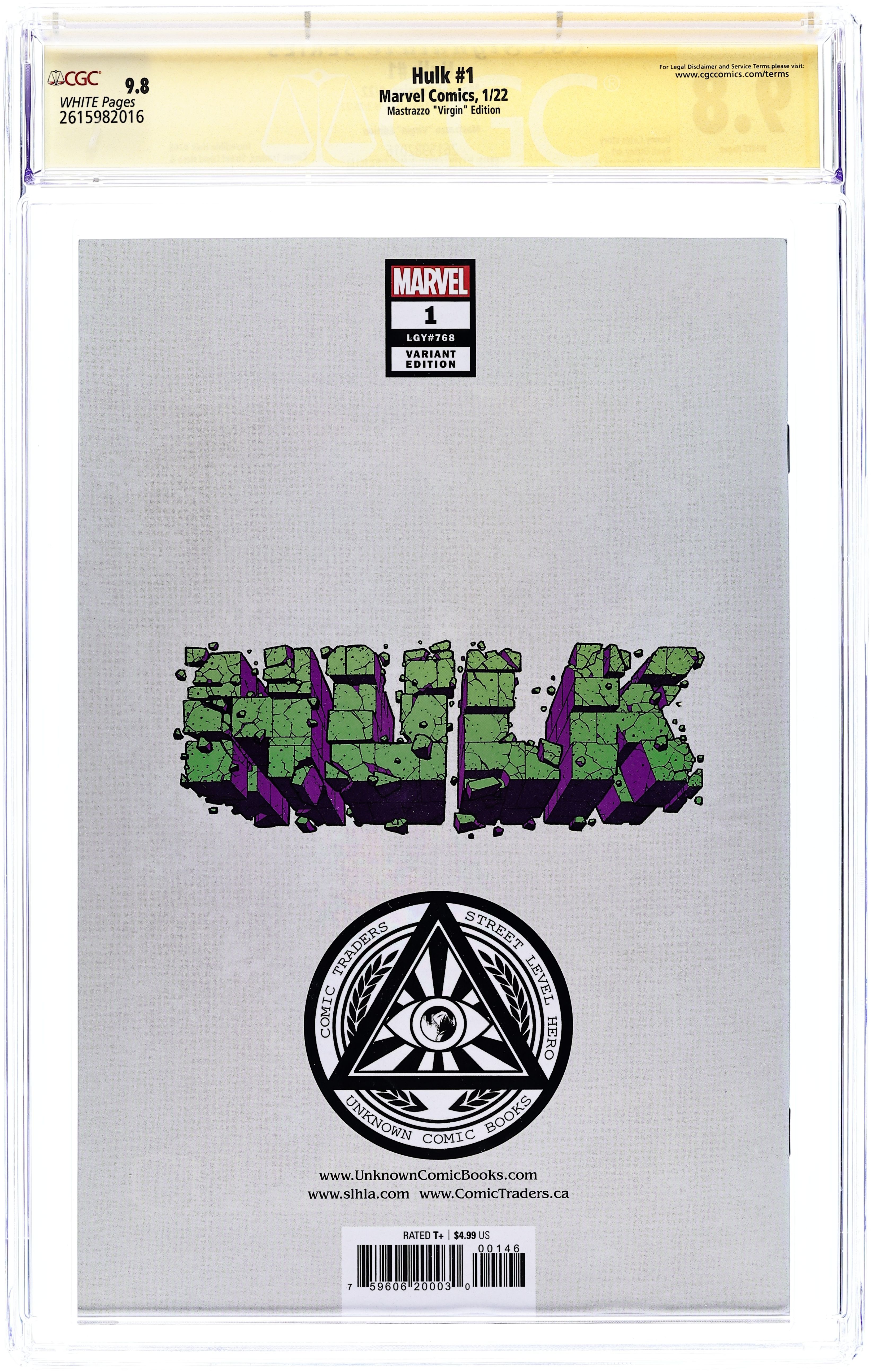 Tags: Marvel Legacy Numbering: Hulk (part 768), HulkHulk (2022 Marvel) 1ILLUMINATI.B CGC 9.8 SS Ferrigno Mastrazzo Illuminati Virgin Variant