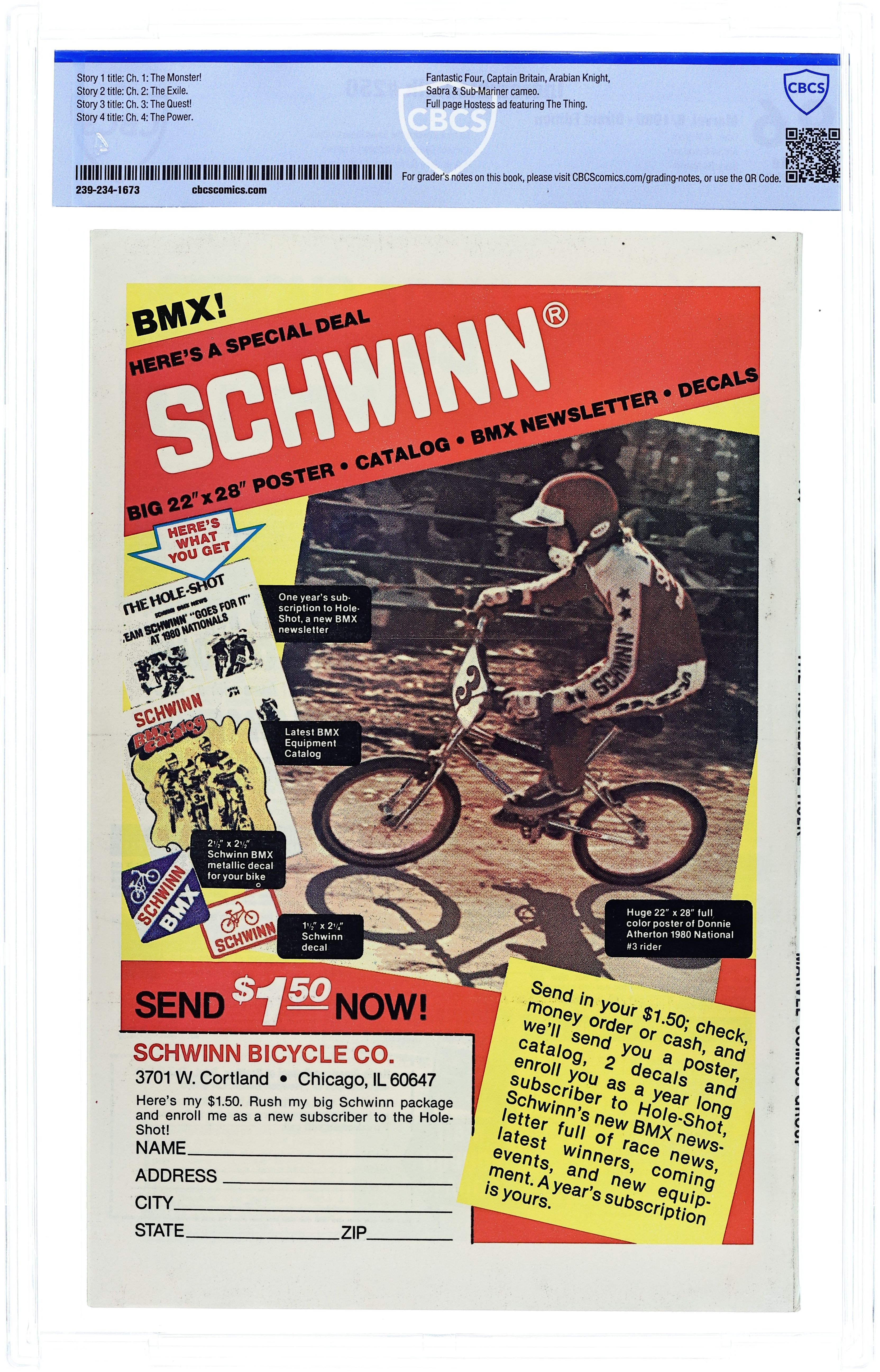 Starts May 11 Direct Edition. Special giant-sized issue. Guest-starring Silver Surfer. A 250th celebration brought to you by Bill Mantlo and Sal Buscema. The Earth trembles when titans clash. It's the nigh unstoppable Incredible Hulk vs. the former Herald of Galactus, the Silver Surfer. Imprisoned on Earth by his former master, the Silver Surfer intends to add the immeasurable power of the Hulk to his own and break the barrier that keeps him from his home Zenn-La and his beloved. The only problem is, the Hulk has never been known for his generosity. 52 pages. Cover price $0.75.