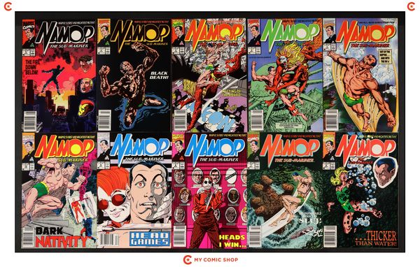 Issues 1, 2, 3, 4, 5, 6, 7, 8, 9, 10 of Namor the Sub-Mariner (1990 1st Series). Most will grade in the FN- to VF range.
