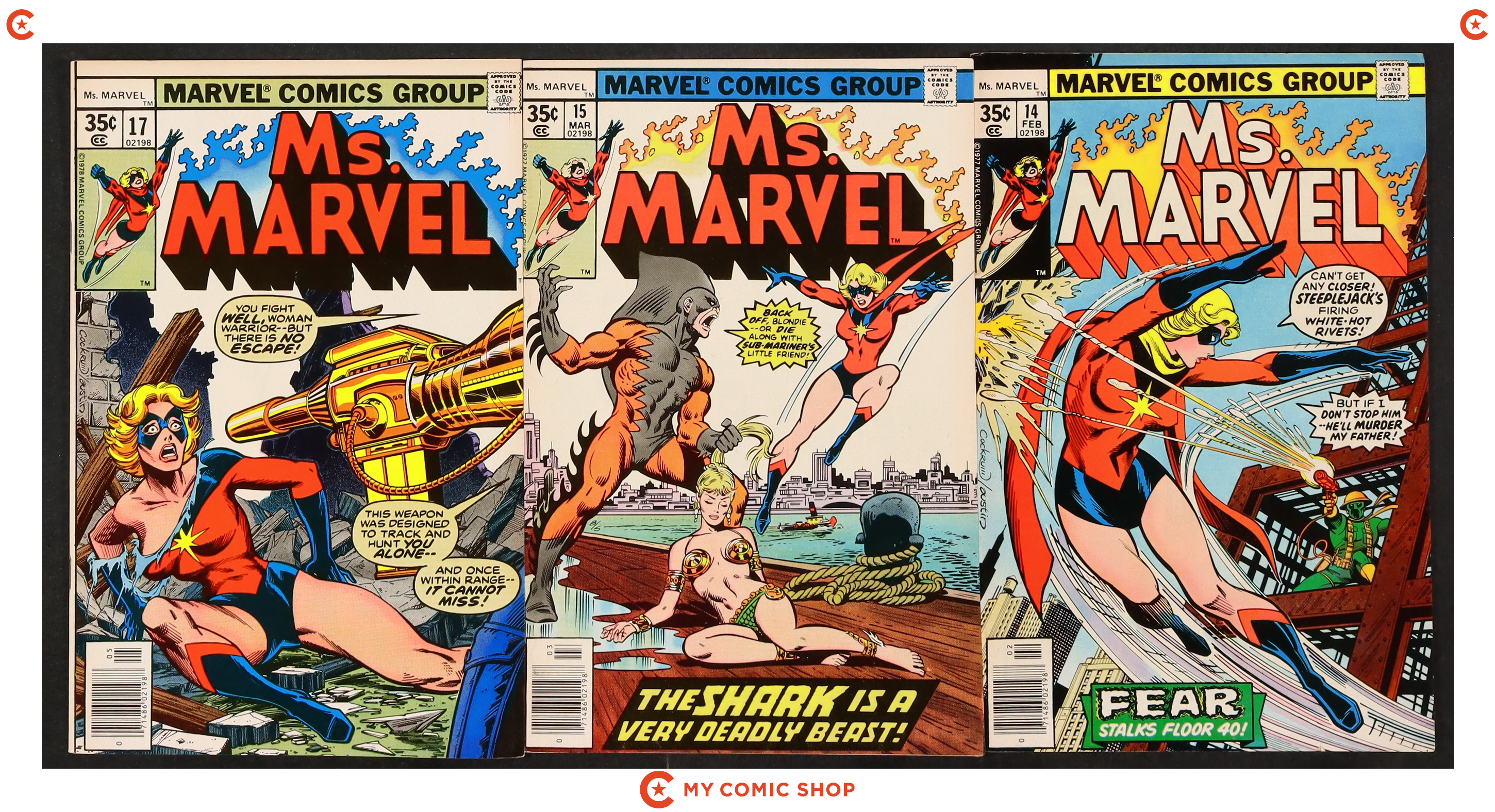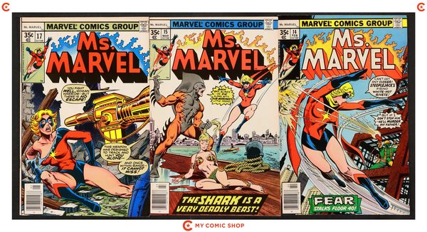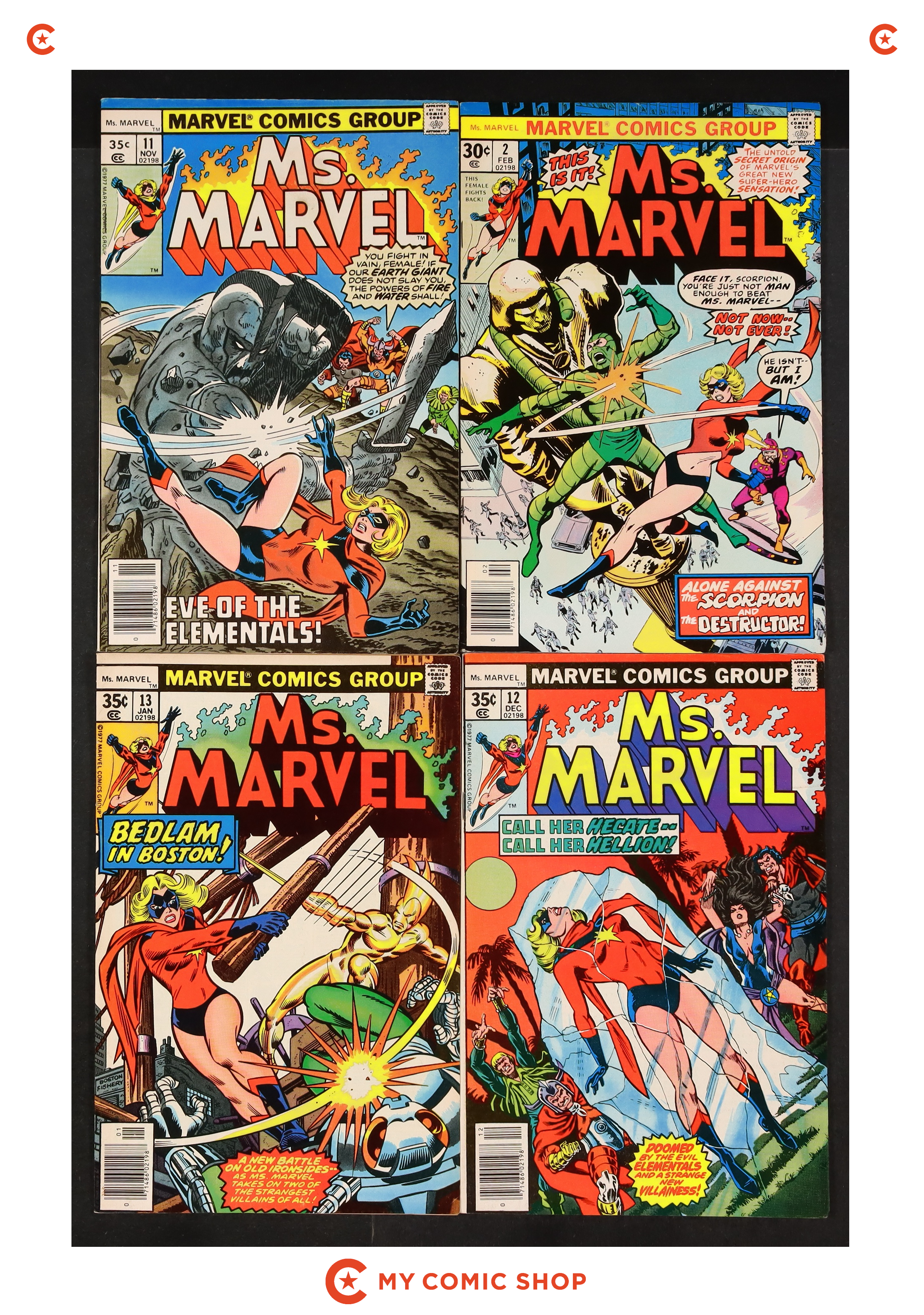 Issues 2, 3, 4, 5, 6, 7, 8, 14, 19, 20, 21, 23 of Ms. Marvel (1977 1st Series). Most will grade in the VG+ to FN+ range.