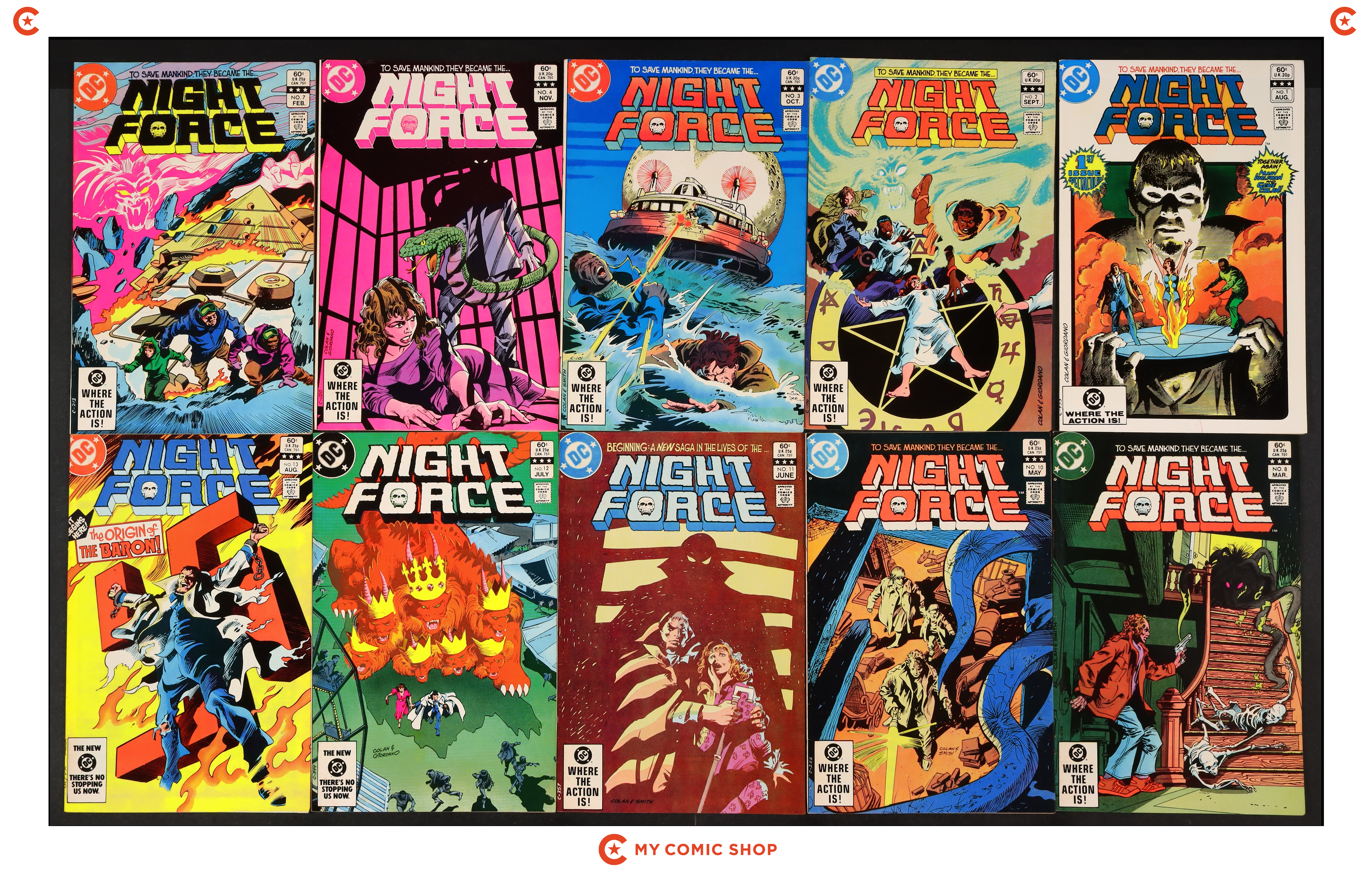 Issues 1, 2, 3, 4, 5, 6, 7, 8, 9, 10 of Night Force (1982 1st Series). Most will grade in the VG/FN to VF range.