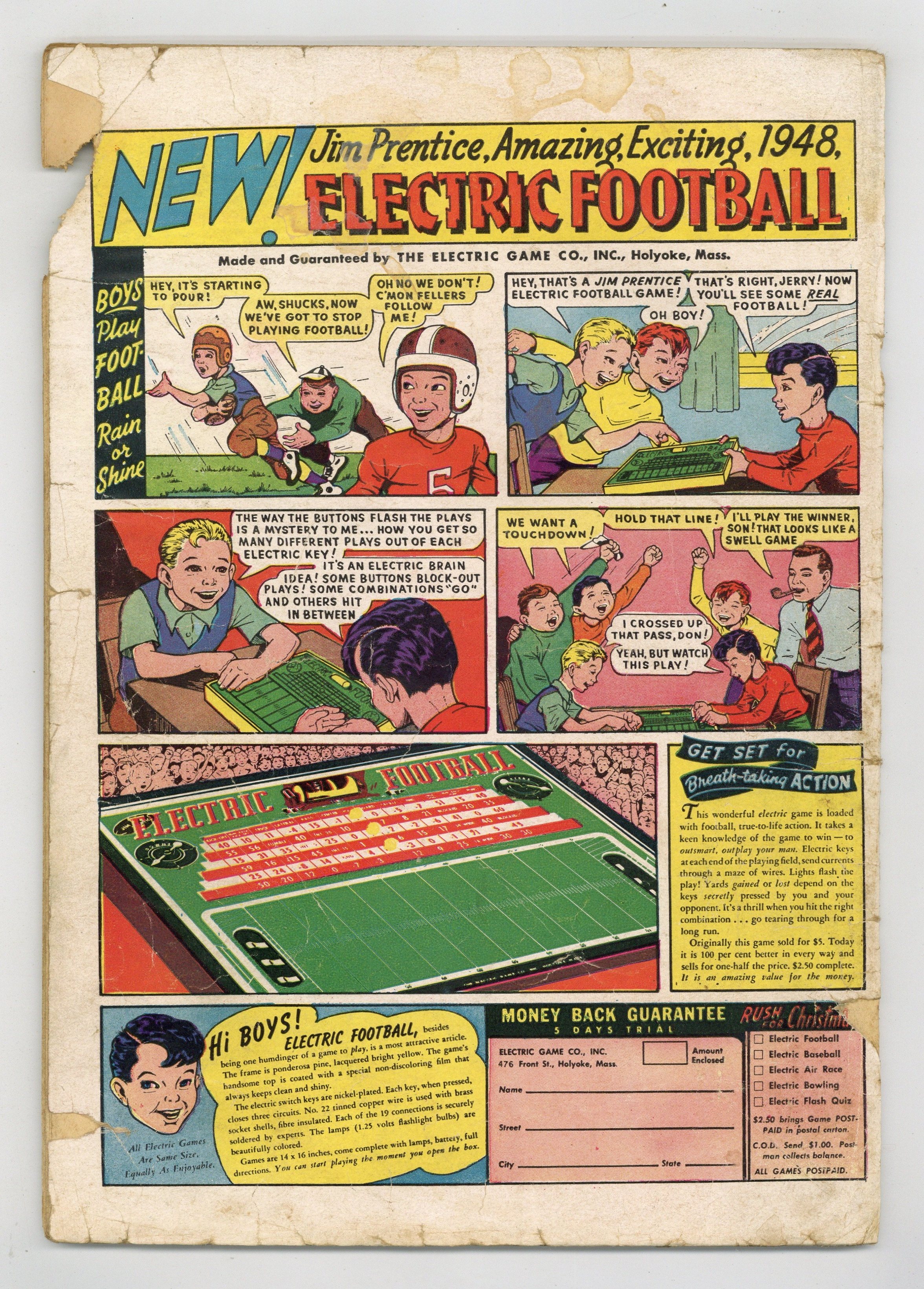 INCOMPLETE. Missing piece (interrupt art and story). Centerfold detached. Water damage.