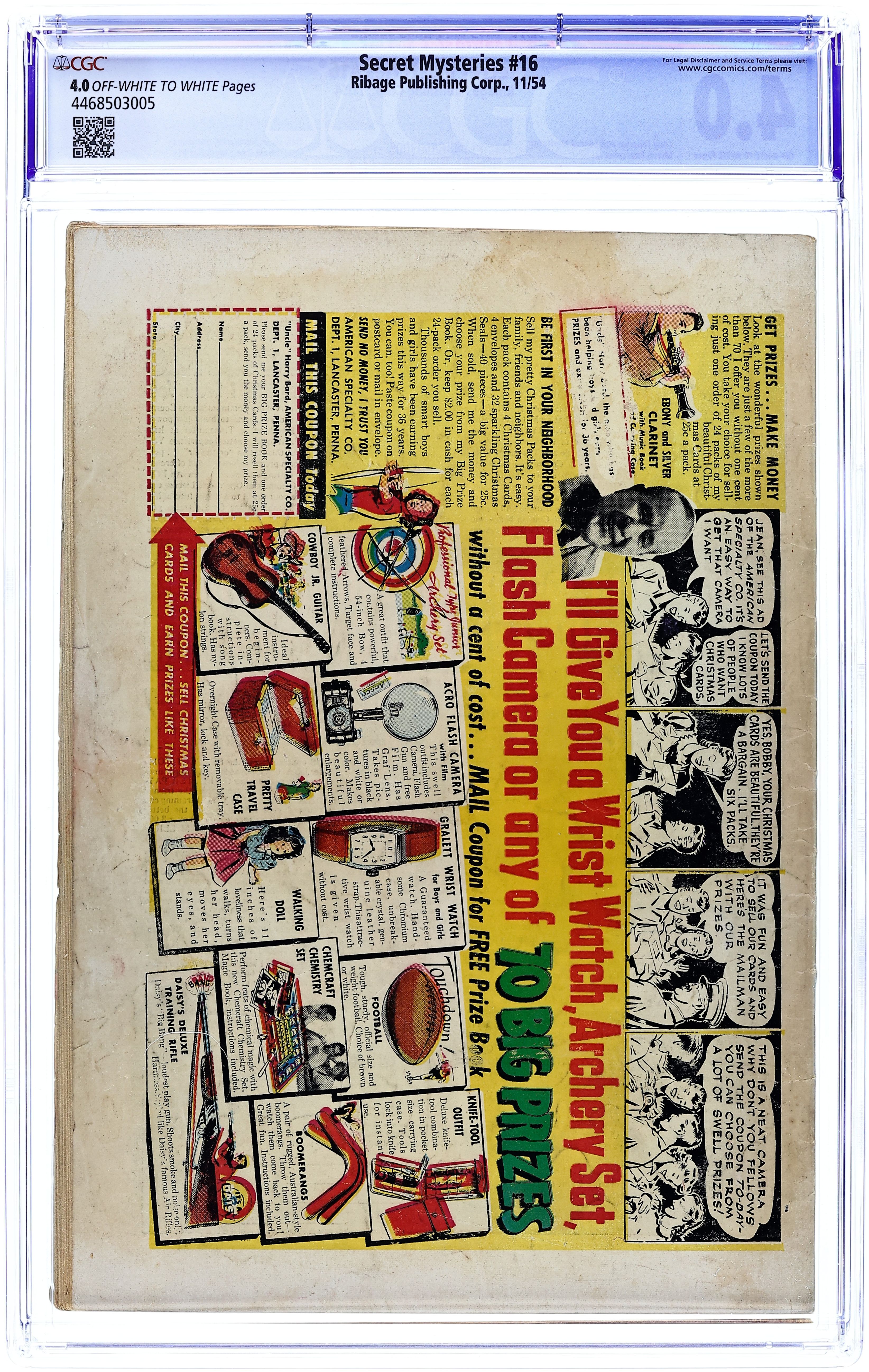 Secret Mysteries (1954) 16 CGC 4.0